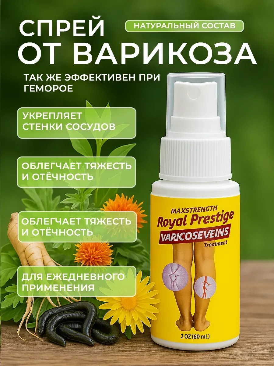 Испытайте силу природы с новым антиварикозным спреем — эффективным и удобным средством для легкости ваших ног. Этот инновационный аэрозоль разработан специально для взрослым женщин, страдающих от варикоза, отеков, сосудистых звездочек, синяков и усталости.