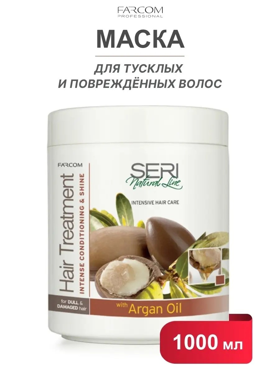 Mask for dull and damaged hair with argan oil, Seri Natural Line, Greece, 1000 ml. This mask for dull and damaged hair has a formula enriched with Moroccan argan oil, rich in vitamin E, omega-3 and omega-6 fatty acids, which are known for their softening, toning and protective properties. Helps restore even the dullest and damaged hair, leaving it soft, shiny and healthy-looking. **DIY** Apply to entire length. Leave on for 3 minutes. Rinse thoroughly with warm water.