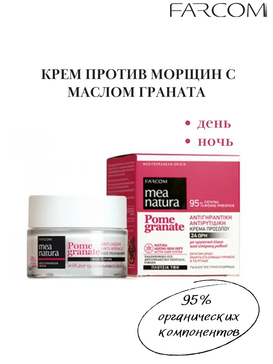 Pomegranate 24-hour rejuvenating face cream with intensive action, against wrinkles and signs of aging skin.