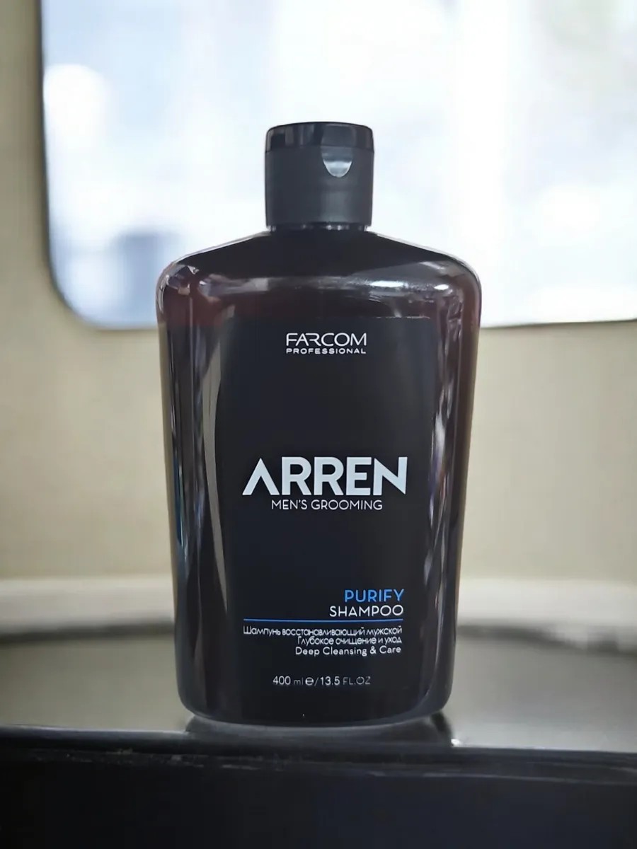 Шампунь для волос с пантенолом очищающий профессиональный 1000 мл Farcom Professional Arren Purify обеспечивает глубокое очищение и уход, эффективно удаляет излишки кожного сала и остатки средств для укладки. Волосы мгновенно оживляются, восстанавливаются и приобретают здоровый вид. Мужской шампунь содержит пантенол, который помогает укрепить волосы и естественный баланс кожи головы, защищает, увлажняет, придает естественное сияние и текстуру. Идеально подходит для ежедневного использования. Шампунь с дозатором, увлажняющий, укрепляющий, очищающий, для всех типов волос, для сухих и жирных волос, для тонких, для нормальных, для мужских, для ежедневного применения и ухода. Способ применения: равномерно нанести на влажные волосы, вспенить и тщательно смыть большим количеством воды. При необходимости повторить. Только для наружного применения.