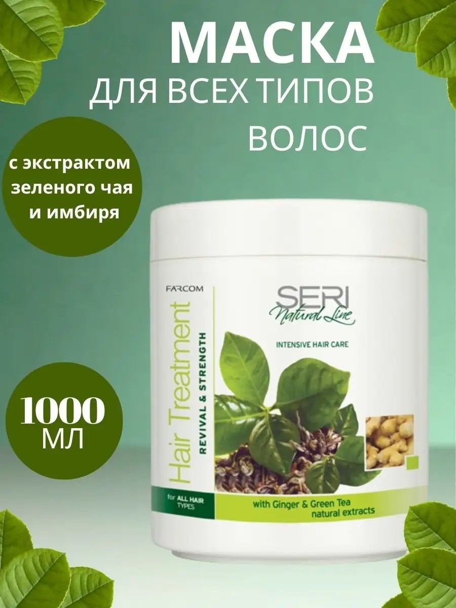 Маска для всех типов волос с экстрактами зеленого чая и имбиря восстанавливающая защитная Seri Hair Treatment Revival & Strength от Farcom (Греция). Средство для волос с формулой быстрого действия делает волосы блестящими и обеспечивает легкое расчесывание всего за 3 минуты! Косметическое средство - маска для волос Seri - как женская, так и мужская, подходит для всех типов волос - тонких, тусклых, ломких, сухих, жирных, а также кудрявых и вьющихся волос.
