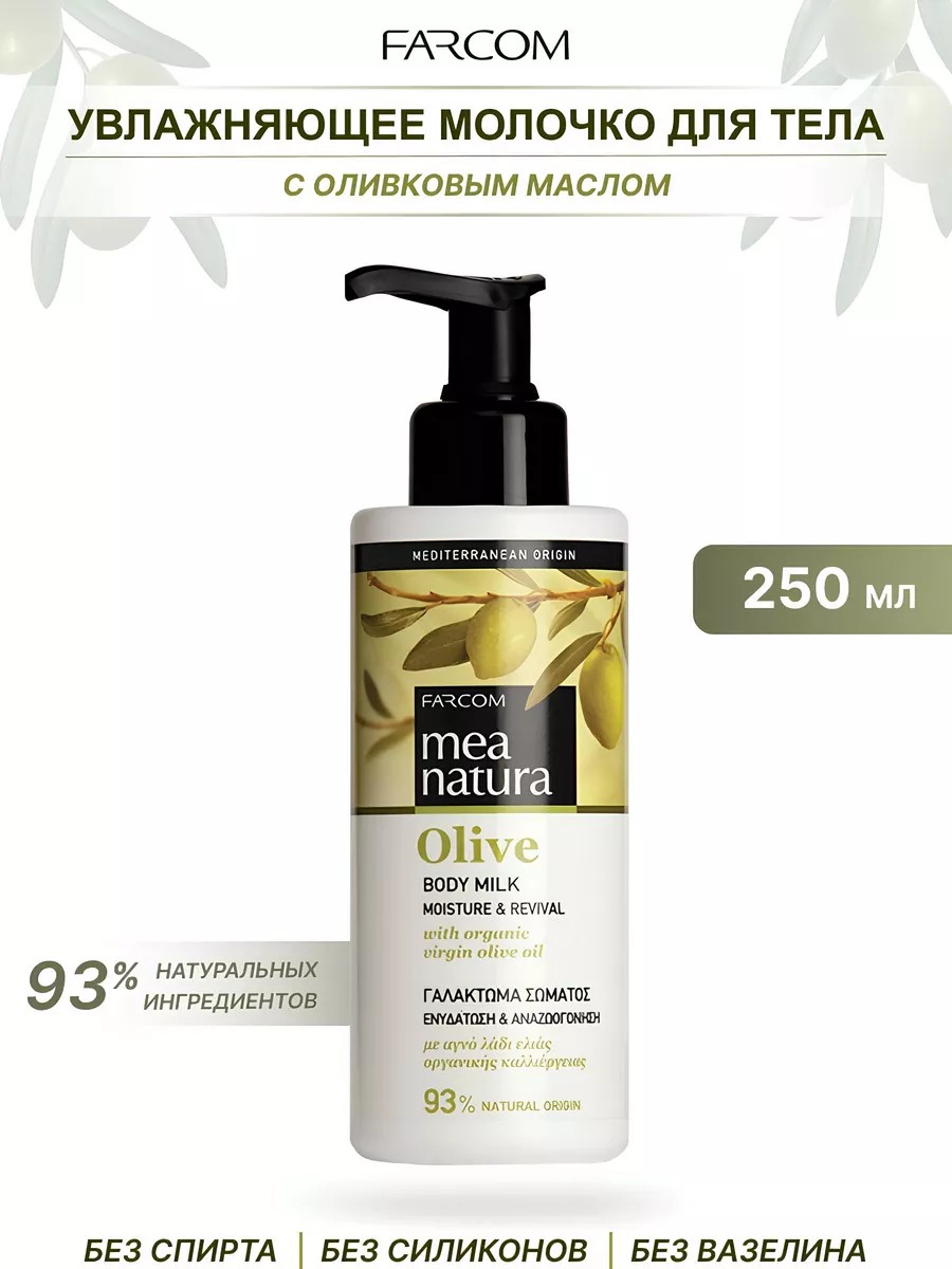 Молочко с экстрактом оливы - это уходовое средство, которое обеспечивает надежный уход за кожей, питает и увлажняет ее. Это идеальный выбор для тех, кто ищет качественную профессиональную косметику по доступной цене. Mea natura от компании farcom – это идеальное средство для женщин любого возраста. Также крем идеален для беременных и кормящих мам. Крем подходит для любого типа кожи, в том числе для чувствительной и атопичной кожи.