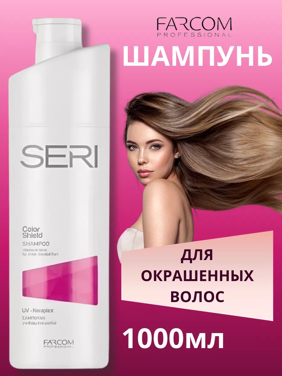 Шампунь для окрашенных волос профессиональный Farcom Seri Color Shield 1000мл – идеальное средство для женщин и мужчин, которые ценят качественную косметику и уделяют внимание заботе о своих волосах. Этот профессиональный шампунь эффективно справляется со всеми проблемами волос, и станет незаменимым помощником в вашем ежедневном уходе за волосами и кожей головы Уникальный состав предотвращает секущиеся кончики, спутанность и ломкость, облегчая расчесывание. Инновационная формула шампуня для окрашенных волос обогащена активными ингредиентами UV-Keraplex и маслом Моной де Таити прекрасно защищает окрашенные и осветленные волосы блонд от вымывания цвета, сохраняя яркость оттенка и блеск. Качественный шампунь дает нежное очищение, не пересушивает волосы и сохраняет естественный баланс влаги PH обеспечивая идеальный комплексный уход и благотворное влияние на здоровье волосяных фолликул. Обладает невероятными свойствами увлажнения и питания волос. Подходит для ежедневного использования.. Уходовая косметика для волос Farcom не содержит сульфатов, силиконов и парабенов, что делает ее идеальным выбором для мам, бабушек и девушек и парней, а также женщин и мужчин. Подойдет для всех типов волос, окрашенных и осветленных, а также обесцвеченных и пористых, блондинок и брюнеток. Оригинальный шампунь объемом 1л гарантирует экономичность и долгое время использования шампуня также придаст волосам здоровый блеск и шелковистость. Это отличный вариант как для домашнего использования так и для салонов красоты, парикмахерских и студий стилистов. Греческая косметика Farcom предлагает широкий выбор шампуней для волос. Независимо от ваших нужд и типа волос, вы сможете найти идеальный вариант для себя. Доверьте уход за вашими волосами настоящим профессионалам.