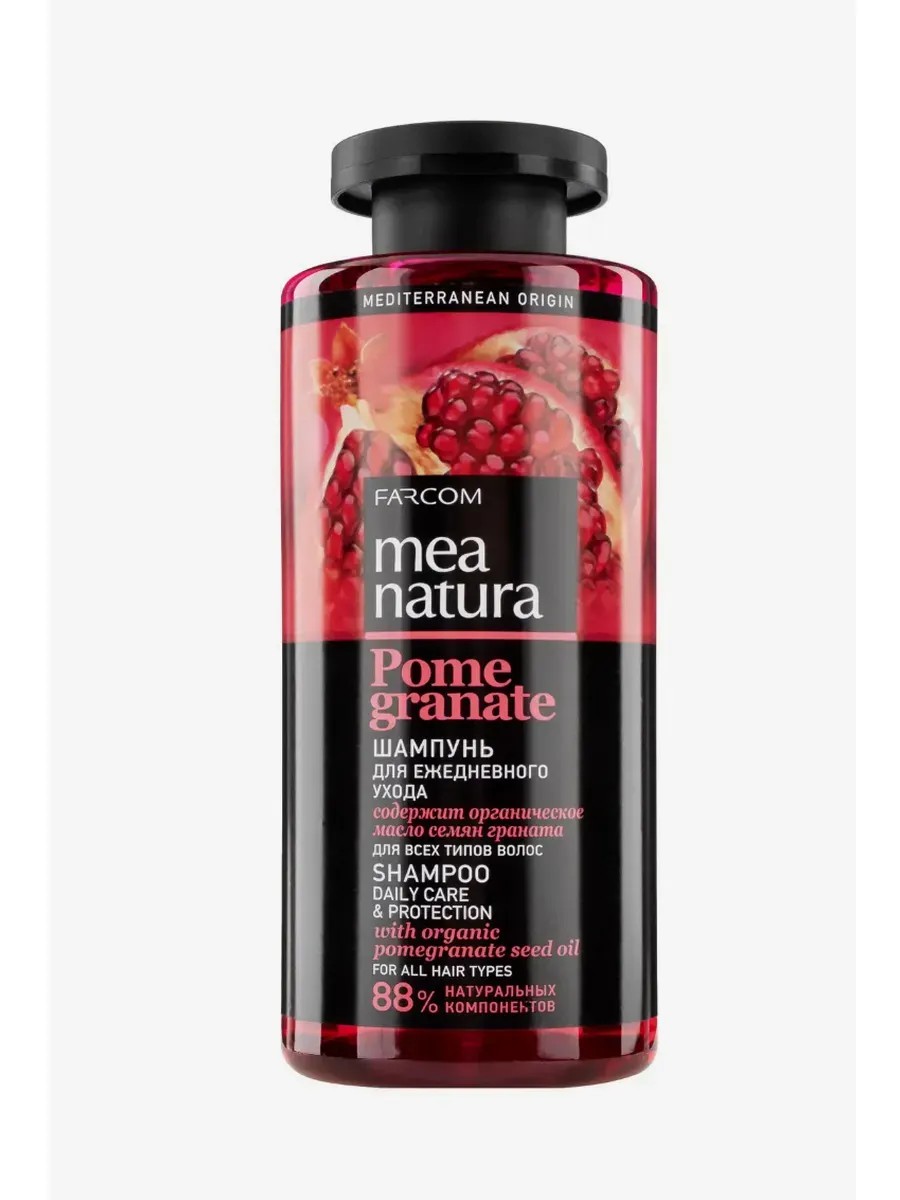 Шампунь FARCOM mea natura для всех типов волос. Его мягкая формула содержит органическое масло семян граната, полисахариды и натуральный экстракт семян льна. Это естественная смесь антиоксидантных и увлажняющих ингредиентов, богатая полифенолами, дубильными веществами. Омега-3 жирными кислотами и витаминами - необходимыми для здорового роста волос. Благодаря своему кондиционирующему действию они защищают волосы от ломкости и истирания, вызванных расчесыванием. Бережно ухаживает за кожей головы, не раздражая ее. Оживляет волосы, делая их шелковистыми, мягкими, яркими и сияющими. Нанести на влажные волосы, помассируйте, смойте водой.