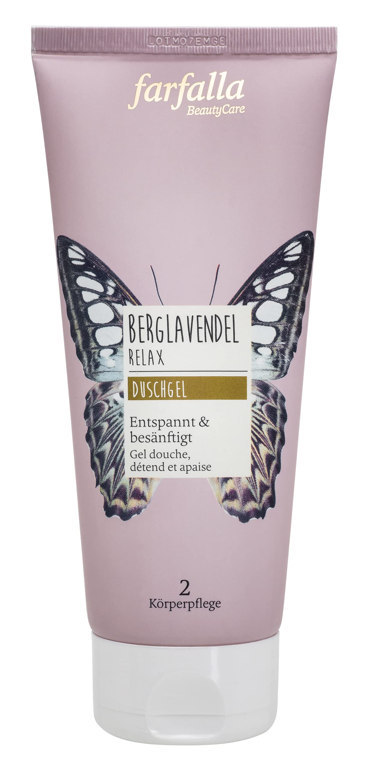 A relaxing shower experience that brings calm and serenity. The balancing and soothing essential oil of mountain lavender helps to wash away the day's stress and promote relaxation. Gentle plant-based surfactants cleanse the skin without stripping it of moisture. Suitable for all skin types, especially sensitive skin. INGREDIENTS Water, surfactant, alcohol, vegetable glycerin, lavender water , xanthan gum, lavender oil, natural essential oil blend, glutamate, amino acid residues, citric acid, RE, LEVULUL. Acid, sodium levulinate. From certified organic farmingDermatologically tested - Our product is safe for all skin types, including sensitive skin, and has been dermatologically tested. Moisturizing care: This shower gel hydrates your skin and keeps it feeling fresh and moisturized all day long. Gentle on skin - Mild plant-based surfactants cleanse your skin without compromising its natural moisture balance. Ideal for sensitive skin. Natural cosmetic - Certified by NaTrue and completely vegan. A product that's not only good for your skin, but also for the environment. Lavender shower gel: A gentle shower experience with mountain lavender essential oil to help you relieve daily stress and unwind.farfalla Gel douche relaxant à la lavande de montagne Relax 200 ml – Gel douche relaxant et apaisant à la lavande – Huile essentielle nettoyant doux – Cosmétique 100 naturel certifiéDESCRIPTION DU PRODUIT DESCRIPTION DU PRODUIT Une expérience de douche relaxante qui apporte calme et sérénité. L'huile essentielle équilibrante et apaisante de lavande de montagne aide à éliminer le stress de la journée et à se détendre. Les tensioactifs végétaux doux nettoient la peau sans perte d'humidité. Convient à tous les types de peaux, en particulier les peaux sensibles. INGRÉDIENTS Eau, tenside, alcool, glycerine végétale, eau de lavande , xanthan, huile de lavande, mélange d'huiles essentielles naturelles, glutamate d'acide de cocotte, restes d'acide aminos, acides citriques. RE, LEVULUL. Acide, sodium Levulinate. Issu de l'agriculture biologique contrôléeTesté dermatologiquement - Notre produit est sans danger pour tous les types de peau, y compris les peaux sensibles et a été testé dermatologiquement. Soin hydratant : ce gel douche hydrate votre peau et la garde fraîche et hydratée tout au long de la journée. Doux pour la peau - Les tensioactifs végétaux doux nettoient votre peau sans compromettre sa teneur naturelle en humidité. Idéal pour les peaux sensibles. Cosmétique naturel - Certifié par NaTrue et entièrement végétalien. Un produit qui est non seulement bon pour votre peau, mais aussi pour l'environnement. Gel douche lavande : une expérience de douche douce avec de l'huile essentielle de lavande de montagne qui vous aide à soulager le stress quotidien et à vous détendre.