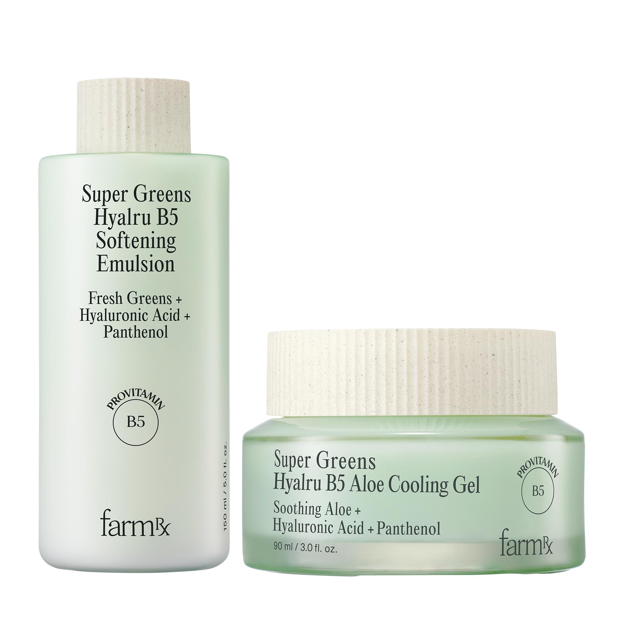 Farm Rx Super Greens Hyalru B5 Softening Emulsion (5fl oz) & Super Greens Hyalru B5 Aloe Cooling Gel Cream (3fl oz)