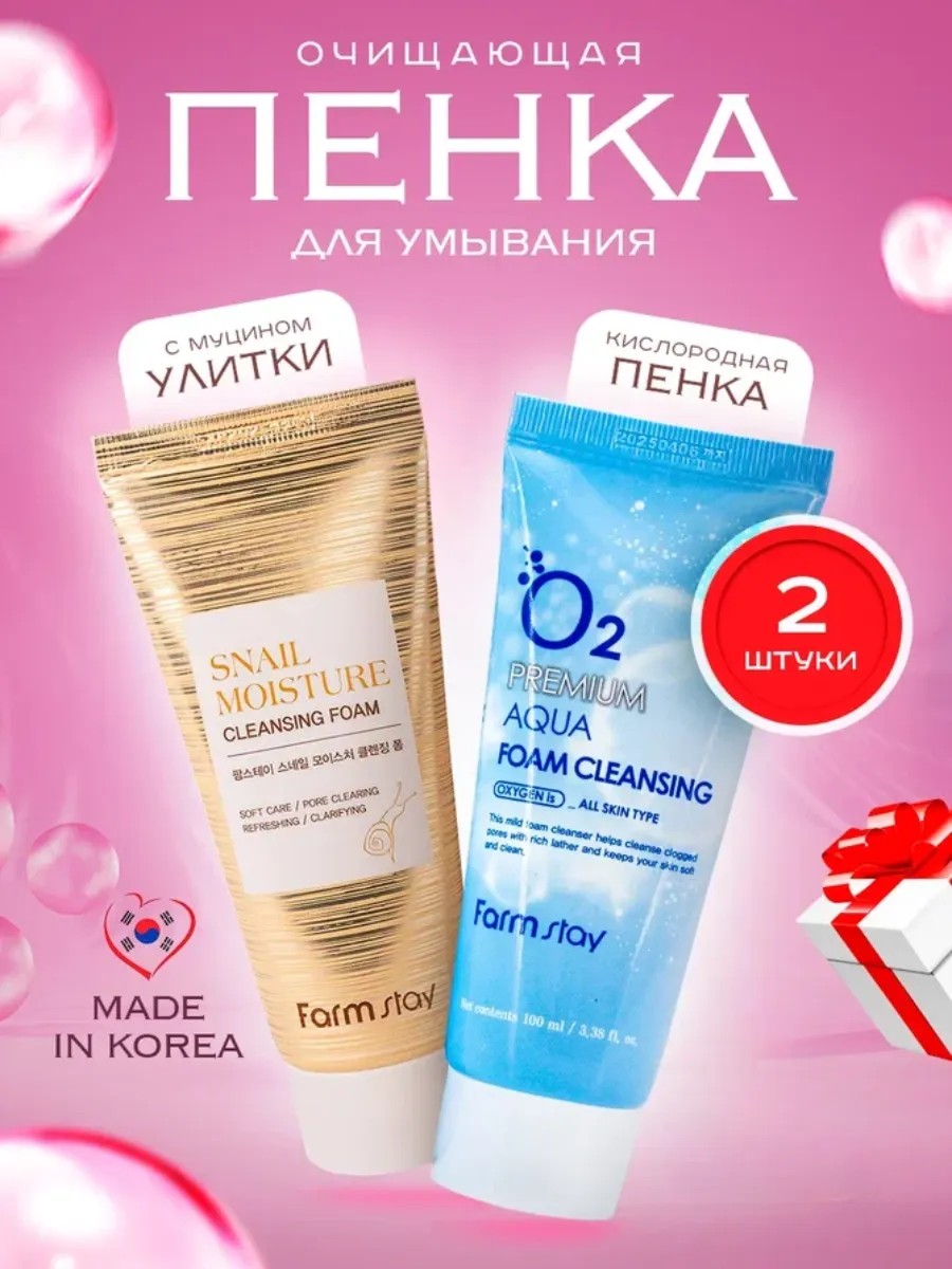 Гель-пенки Farm Stay с муцином улитки 1 шт + О2 1 шт станут вашими верными спутниками в ежедневном уходе. Ее нежная текстура превращается в пышную пену при контакте с водой, обеспечивая глубокое очищение от макияжа. За счёт антиоксидантных свойств, гелевая умывалка мусс защищает эпидермис от старения и предупреждает появление мимических морщин, оказывает тонизирующее действие и насыщение дермы кислородом. Формула средства гарантирует увлажнение и предотвратит обезвоживание Вашего прекрасного личика, а также сделает его упругим и эластичным. Консистенция умывашки Farmstay снимет сухость и раздражение, добавит свежести и сияния. При использовании уйдет отечность, и Вы почувствуете себя более молодой. Продукция Фарм стей очищает поры, помогает от подростковых прыщей и воспалений. Крем-пенка способствует мягкому пилингу, который поможет стимулированию, и обновлению клеток, удалению омертвевших частиц. Наши чудо-средства подходят для любой кожи: для проблемной, сухой, чувствительной и нормальной. Уходовая косметика из Кореи Фармстей славится своим качеством и обладает хорошим лифтинг-эффектом. Необходимо отметить, что продукт Farm-Stay не содержит сульфатов и спиртов, поэтому можете не переживать о нежелательных побочных эффектах. Приятный комплимент будет кстати воспитателю и учителю на 1 сентября, последний звонок или выпускной вечер. Смело вручайте чудо-пенку своей любимой на день всех влюбленных. Beauty-средство отличный сюрприз на 14 февраля, праздник святого Валентина, годовщину свадьбы или просто презент без повода. Оригинальный подарочек обязательно придется по душе каждой женщине, а также девочке подростку или дочке. Высококачественные товары понравятся Вашей жене и даже бабушке. Закажите уже сегодня и Вы увидите результат с первого применения!