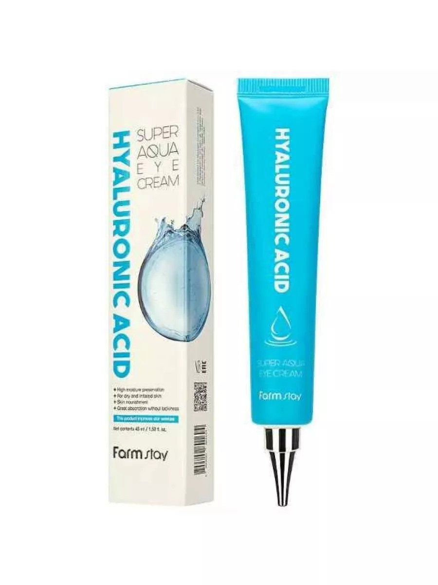Крем вокруг глаз с гиалуроновой кислотой и пробиотиками 45мл, Farm Stay. Крем Hyaluronic Acid Super Aqua Eye Cream из каталога Farm Stay обогащен гиалуроновой кислотой и предназначен для ухода за кожей вокруг глаз. Средство с легкой консистенцией представлено в тубе с тонким носиком для быстро и точного нанесения.