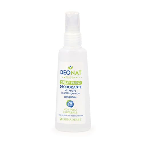 DESCRIPTION DU PRODUIT DESCRIPTION DU PRODUIT Deonat Fresh étant sans parfum, il est particulièrement adapté pour les peaux les plus sensibles et délicates et est également indiqué après l'épilation. DEONAT FRESH PURO est un déodorant pour le corps à base de sels minéraux d'origine entièrement naturelle qui préviennent l'apparition des mauvaises odeurs causées par la prolifération des bactéries et la transpiration. AVERTISSEMENT DE SÉCURITÉ Tenir hors de portée des enfants