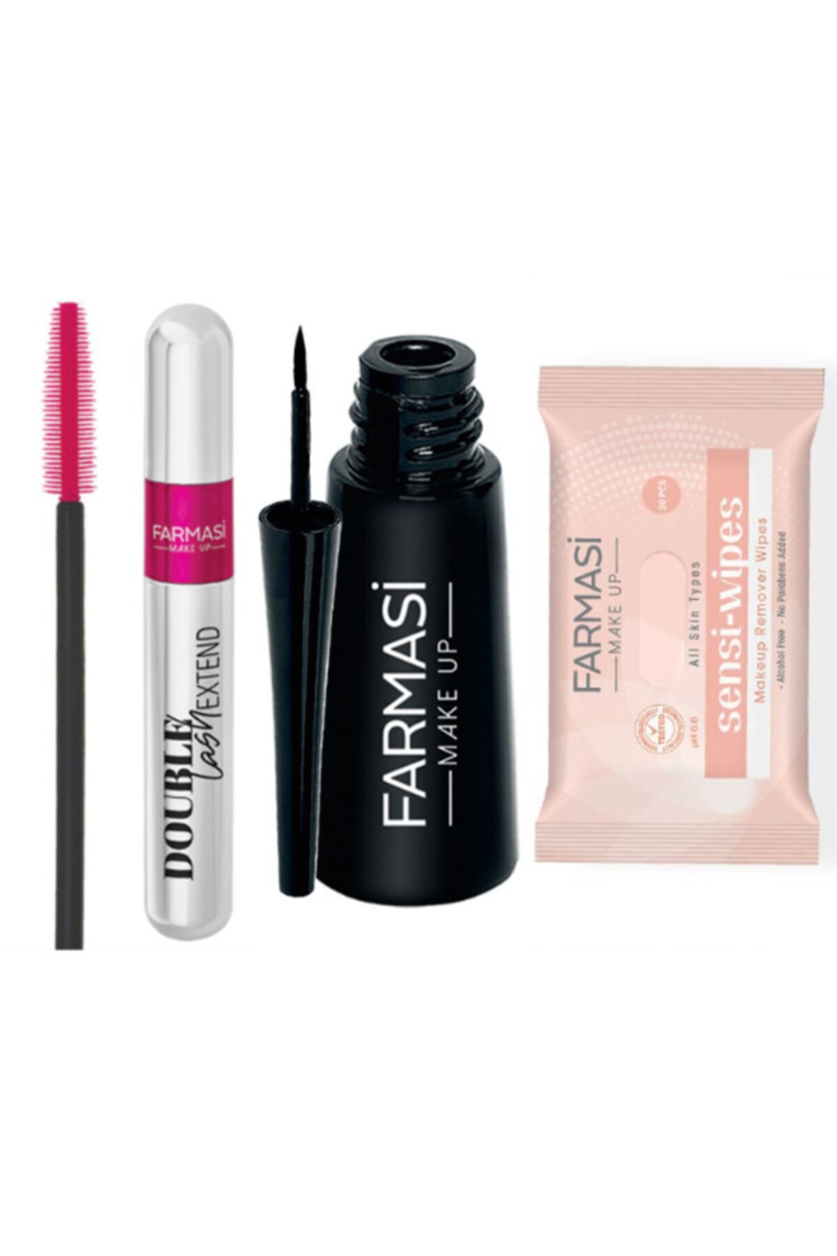 Farmasi Double Lash Extend Double Effect Mascara + Thick End Deeplook Dipliner + Makeup Remover Wipe Set