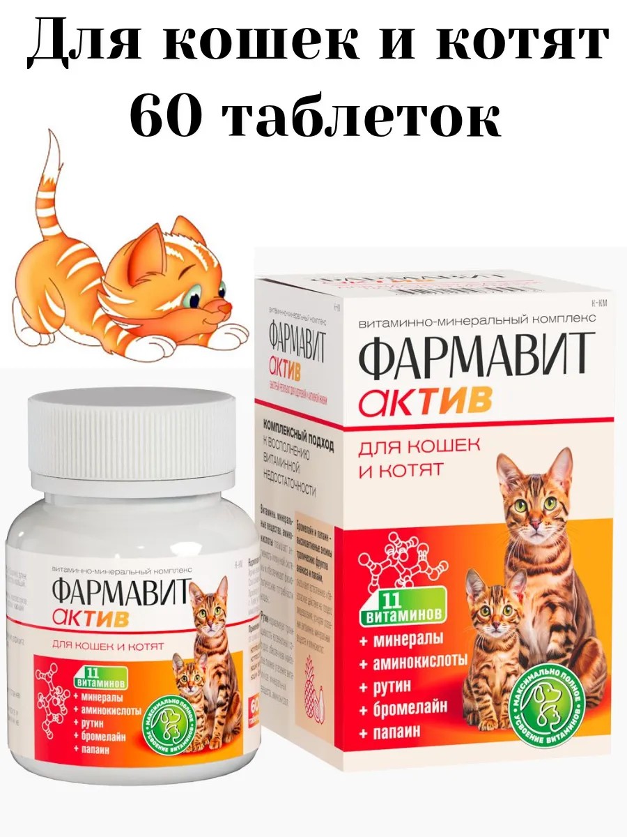 | Полное наименование товара | Фармавит Актив – витаминно-минеральный комплекс для кошек и котят |