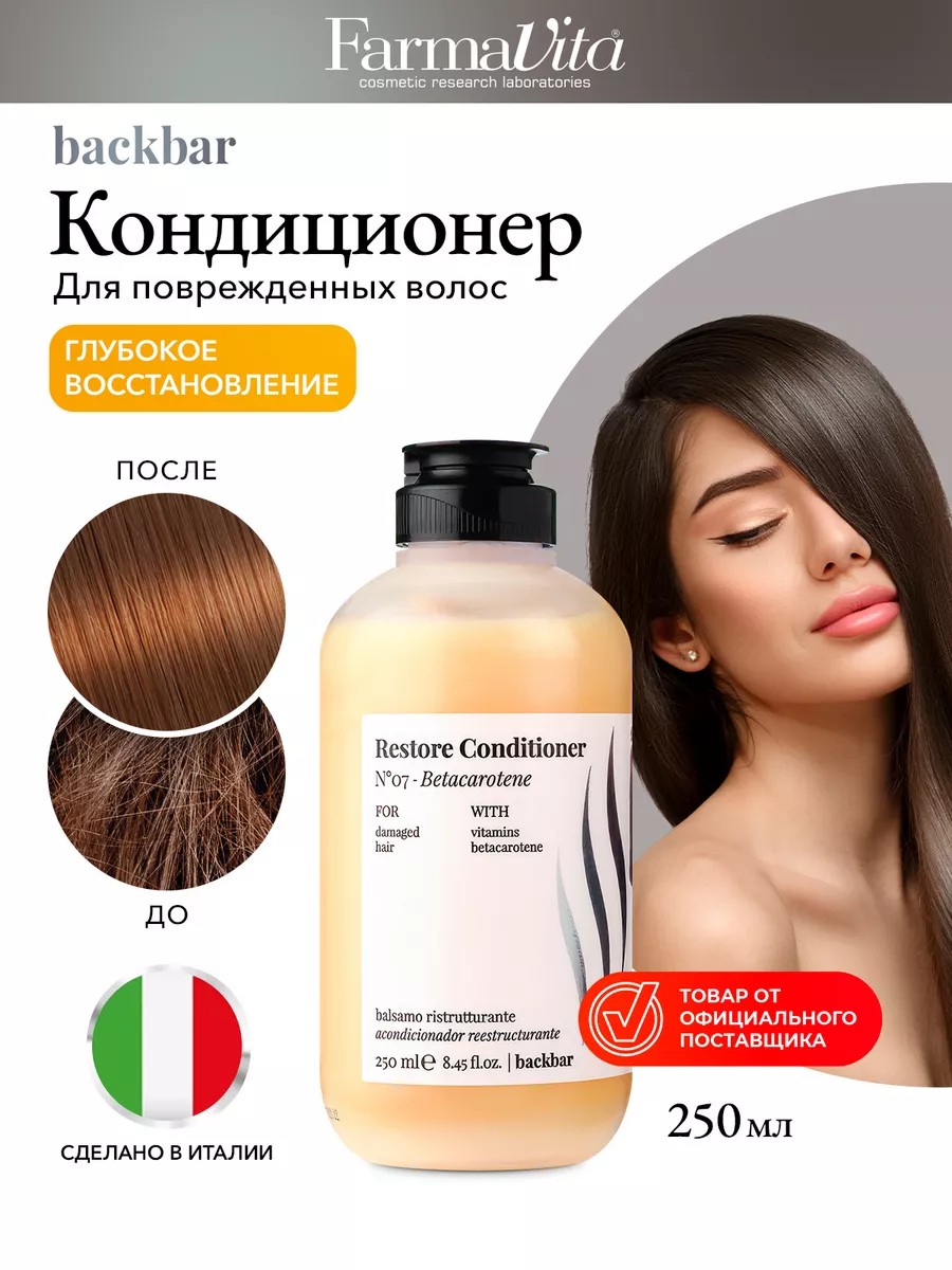 Профессиональный Conditioner BACK BAR №07 содержит бета-каротин (провитамин А), каротиноид с анти-свободными радикалами, обладающий восстанавливающими, защитными и антивозрастными свойствами.