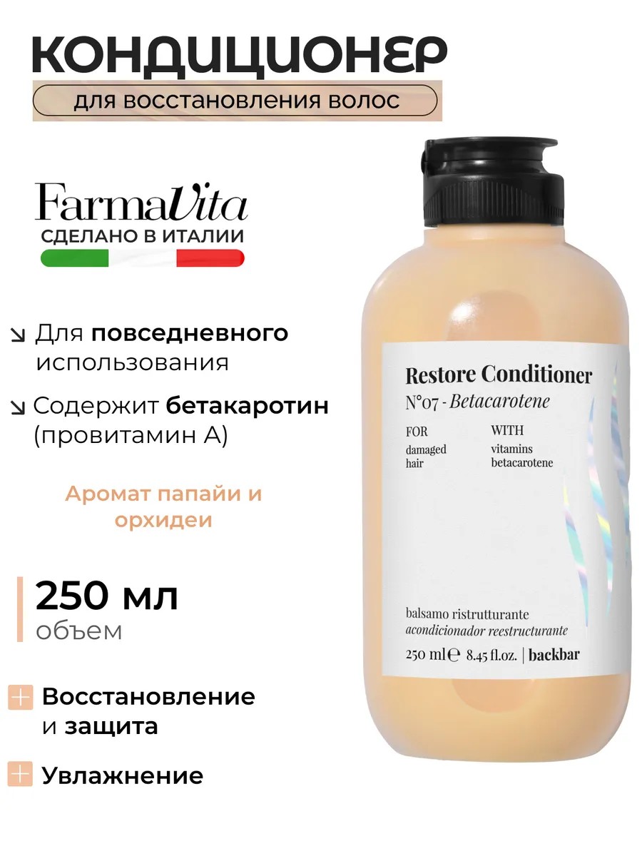 | Полное наименование товара | Back Bar Restore кондиционер для восстановления поврежденных волос с бета-каротином № 07 250 мл |