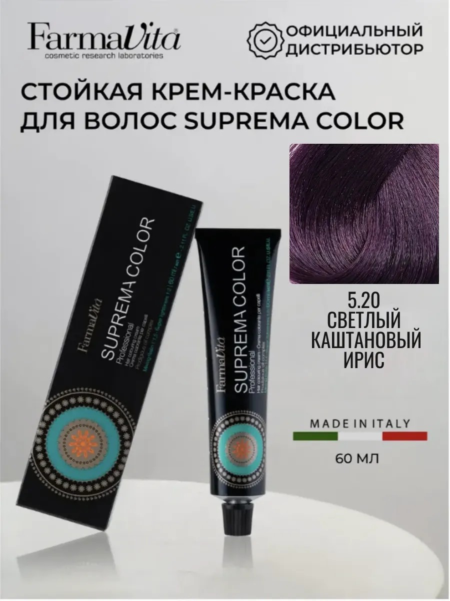 | Комплектация | Профессиональная краска для волос Suprema 5.20 светлый каштановый ирис - 1 шт |