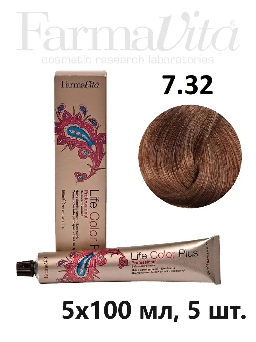 Farmavita Краска волос Life Color Plus 7.32 блондин золотистый ирис