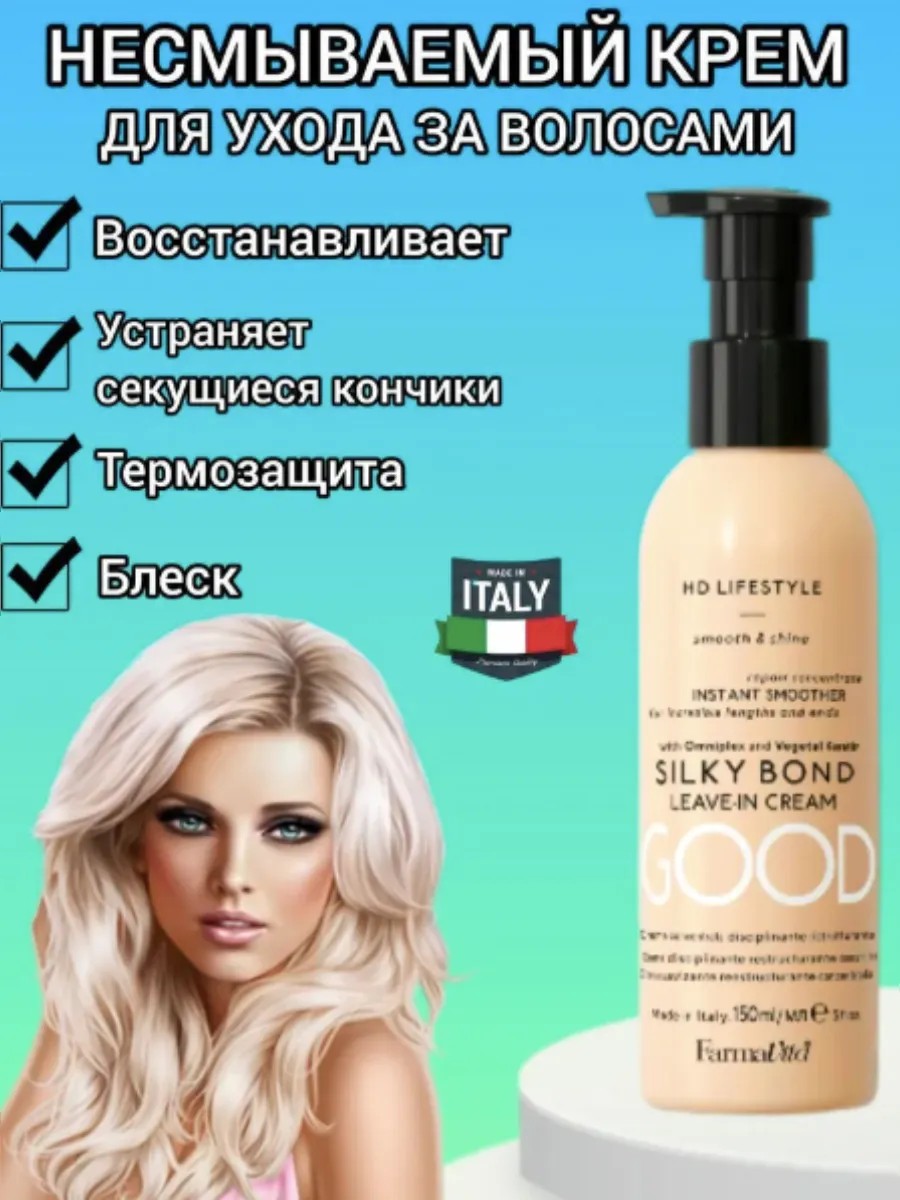 HD Life Style silky bond Высококонцентрированный несмываемый крем с комплексом и кератином растительного происхождения. Высоконцентрирированный несмываемый крем для волос с Omniplex помогает восстановить поврежденные участки и улучшить состояние секущихся концов. После применения волосы приобретают шелковистость и естественный блескНесмывашка разглаживает локоны, делает их мягкими и послушными после первого использования. Рекомендуем использовать этот стайлинг продукт после мытья, перед сушкой феном и утюжком. Термозащита. Farmavita, термозащитный спрей