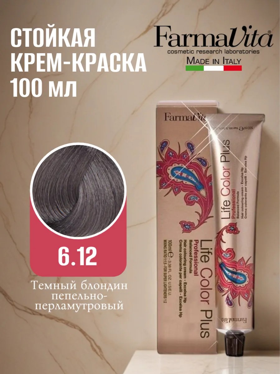 Перманентная окрашивающая крем-краска, основанная на новой усовершенствованной формуле с высокими технологическими свойствами. Новая Excelsa Hp технология, направленная на охрану здоровья человека, позволяет обеспечить надлежащее питание для восстановления волос, поддерживая их основные компоненты: влагу, белки, липиды. Компоненты, входящие в состав краски интенсивно восстанавливают и максимально защищают структуру волоса, обеспечивая тем самым наилучший результат при окрашивании. Применение краски для волос гарантирует глубокое и длительное увлажнение. Никакого запах аммиака! Запах полностью нейтрализован благодаря революционной парфюмерной формуле препарата.Смешивается только с FarmaVita Оксид 3,6,9,12% Life Cream DeveloperПропорции смешивания: 1:1,5Для более интенсивного смешения цветов соотношении 1:1При использовании суперблондов используйте соотношение 1:20-50% седых волос: используйте краску желаемого цвета.50-100% седых волос: используйте половину тюбика краски желаемого цвета и половину тюбика смежных натуральных оттенков в примерном соотношении 1:1 (например, 6.35+6.0).
