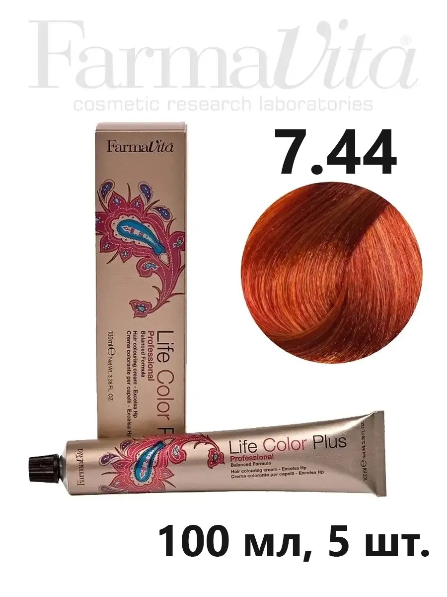 Farmavita Стойкая крем-краска для волос Фармавита Life Color Plus 7.44 блондин насыщенный медный, 5шт