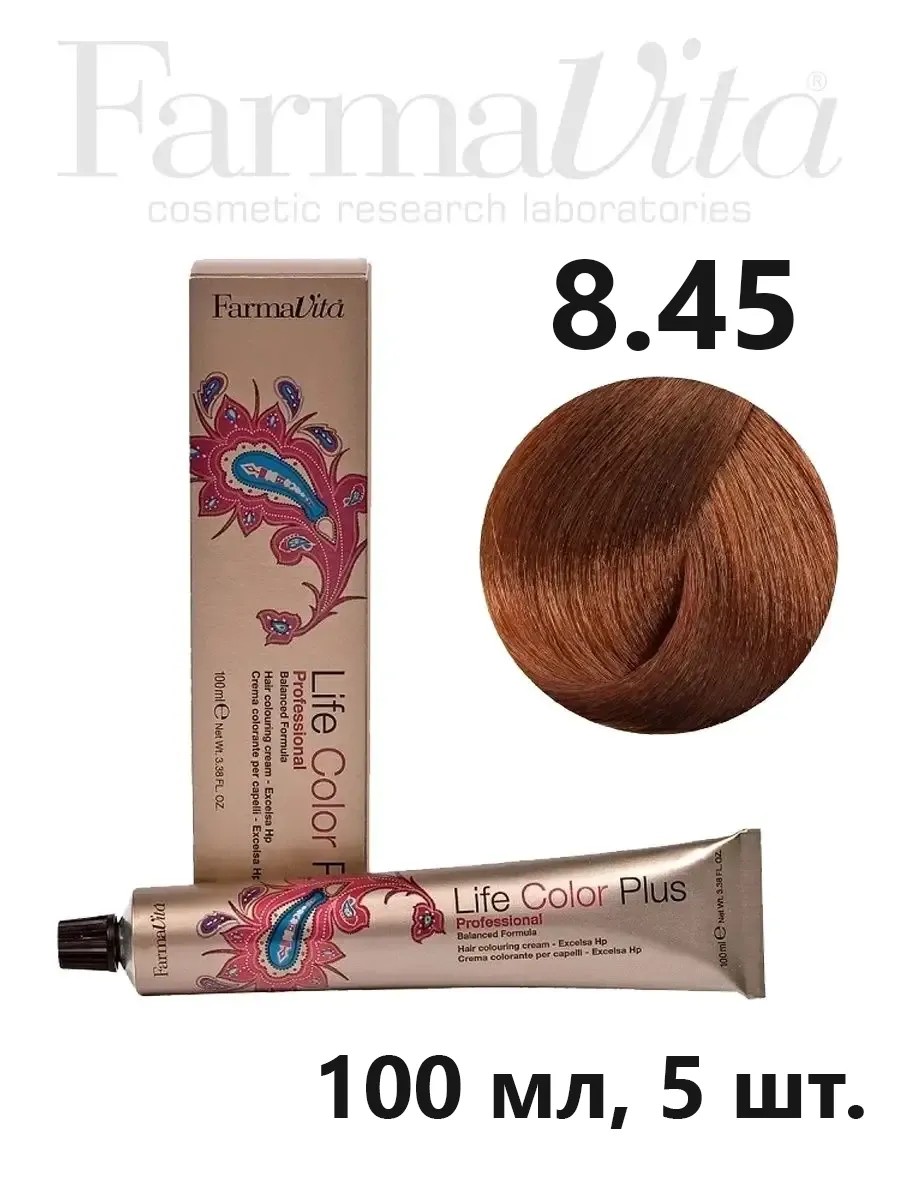 Farmavita Стойкая крем-краска для волос Фармавита Life Color Plus 8.45 светлый блондин медно-красный, 5шт