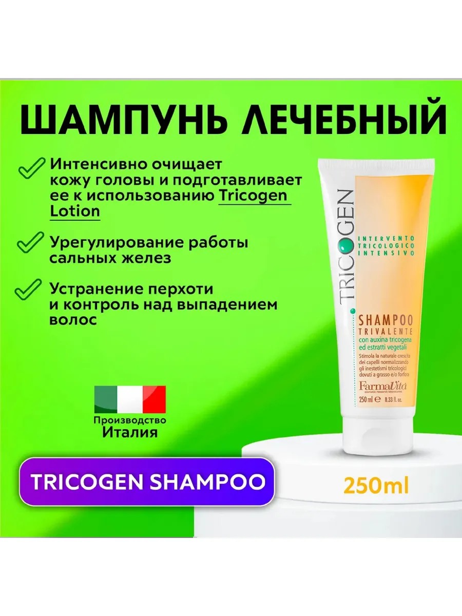 КомплектацияШампунь против перхоти, жирной кожи и выпадения волос Tricogen