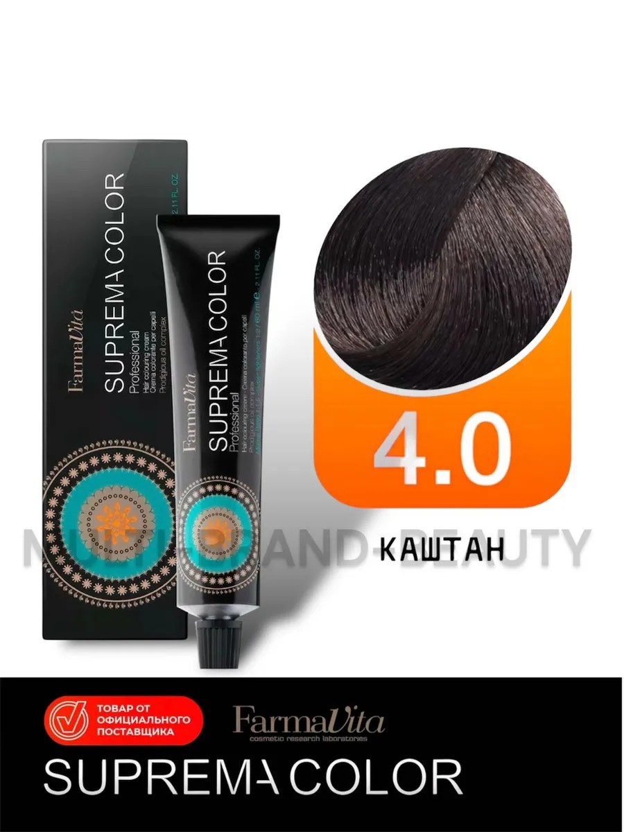 Крем краска для волос Suprema Color от бреда FarmaVita - это профессиональная стойкая крем-краска, благодаря своим уникальным компонентам обеспечивает 100% закрашивание седины и интенсивный уход. Стойкая краска от ФармаВита гарантирует интенсивный, блестящий и яркий результат благодаря высококачественным ингредиентам и его формуле с кремообразной основой, богатой кондиционирующими веществами и жирами, которые работают во взаимодействии с эксклюзивным, изумительным комплексом масел. После окрашивания волосяная кутикула плотно закрыта, волосы приобретают блестящий вид, а масла входящие в состав краски делают локоны (пряди) здоровыми и шелковистыми. Широкий ассортимент палитры позволяет выбрать необходимый оттенок.