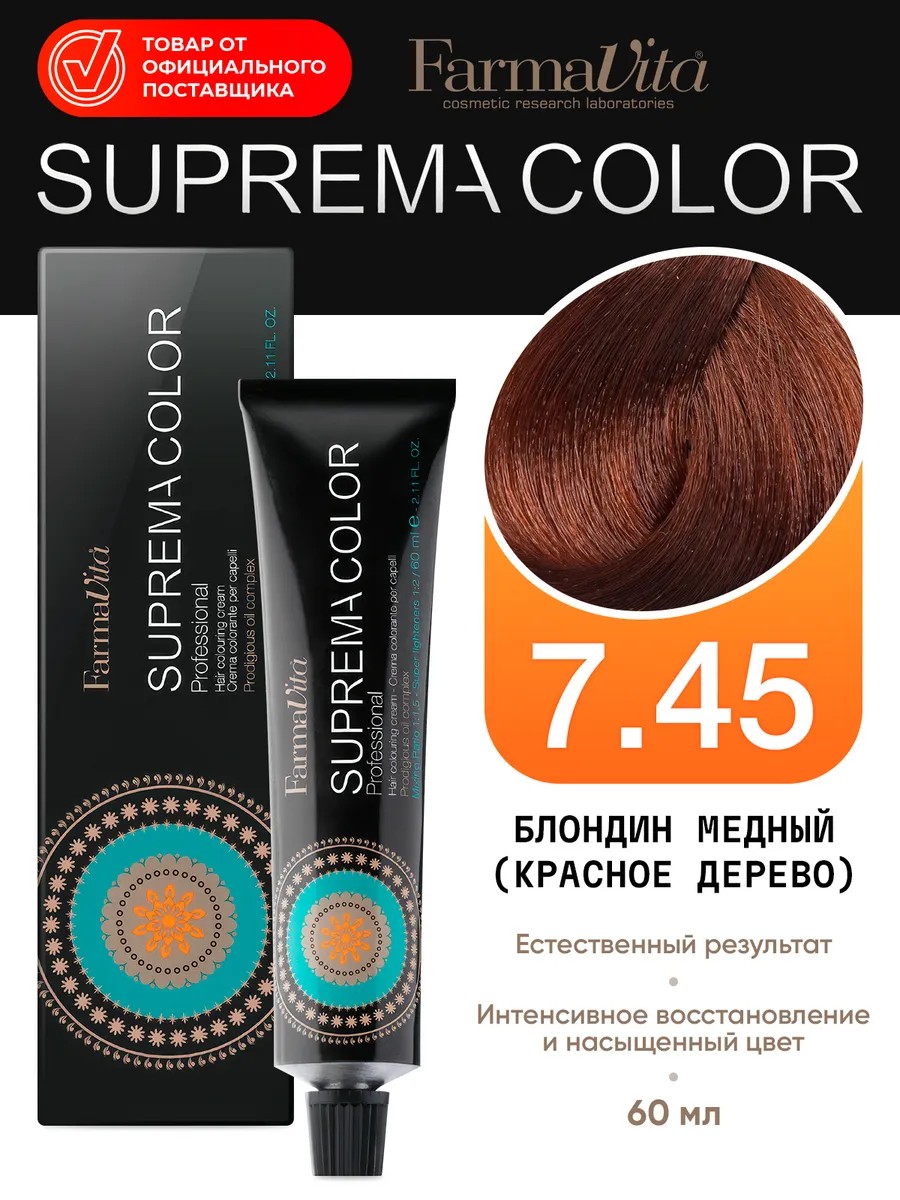| Комплектация | Профессиональная краска для волос Suprema 7.45 блондин медный, 60мл |