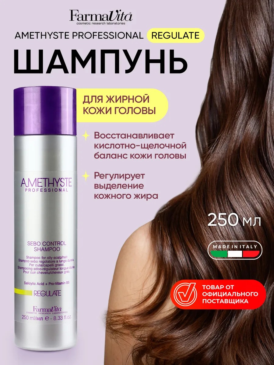 Балансирующий шампунь Amethyste Regulate Sebo Control - это профессиональный шампунь для жирных волос и жирной кожи головы. Питательный шампунь нормализует секрецию сальных желез и убирает излишки жира, восстанавливает естественный уровень липидного слоя кожи, убирает зуд и обеспечивает комфорт на долгое время.