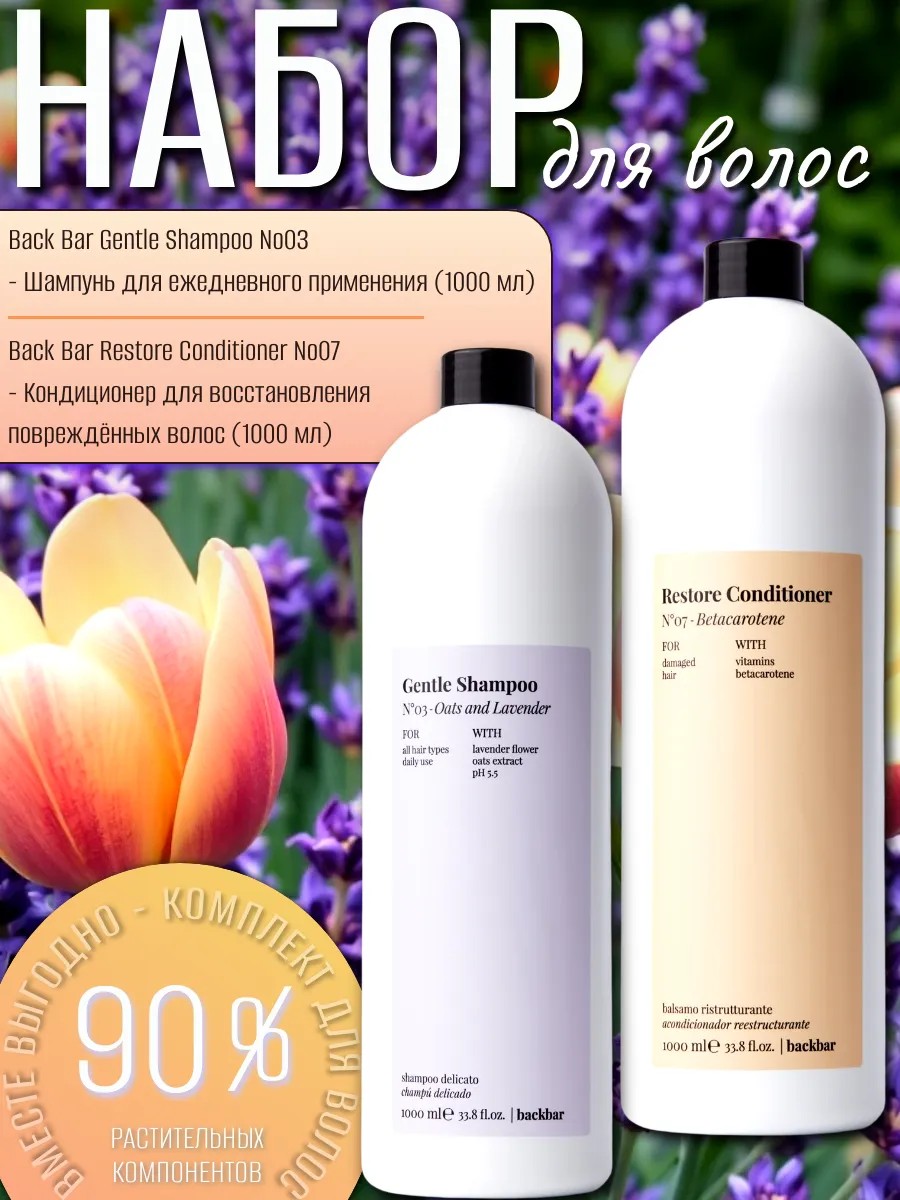 Растительный уход за волосами на каждый день - органическая косметика из Италии для парикмахеров, салонов и домашнего ухода. Шампунь, бальзам-кондиционер от Фармавитаl - это профессиональная, уходовая косметика из Италии. Набор разработан специально для женщин и предлагает полноценный уход за волосами. Шампунь из этого набора обеспечивает бережное очищение волос и кожи головы, помогая устранить перхоть и стимулируя рост волос. Помогает предотвратить выпадение волос и придает им естественный объем. Бальзам в наборе позволяет увлажнить и питать волосы, смягчая их и делая более управляемыми. Он также помогает предотвратить повреждения и ломкость волос, делая их более здоровыми и блестящими. Шампунь для волос и кондиционер для волос содержат много растительных компонентов. Шампунь увлажняющий 1000 мл Gentle-N03 Back Bar и Кондиционер для восстановления волос 1000 мл Restore-N07 Back BarШампунь профессиональный жидкий 1000 мл (дозатор продается отдельно).Ежедневный шампунь Gentle Shampoo №03 Back Bar (Farmavita) для всех типов волос, включая сухие и ослабленные. Содержит натуральные ингредиенты, богатые растительными белками и жирами, которые обладают успокаивающим и увлажняющим свойством. Мягкая формула pH 5,5 для волос и кожи головы. Делает волосы чистыми, блестящими и эластичными.Шампунь обладает ароматерапевтическим эффектом.ДЛЯ СУХИХ И СИЛЬНО ПОВРЕЖДЁННЫХ ВОЛОС.