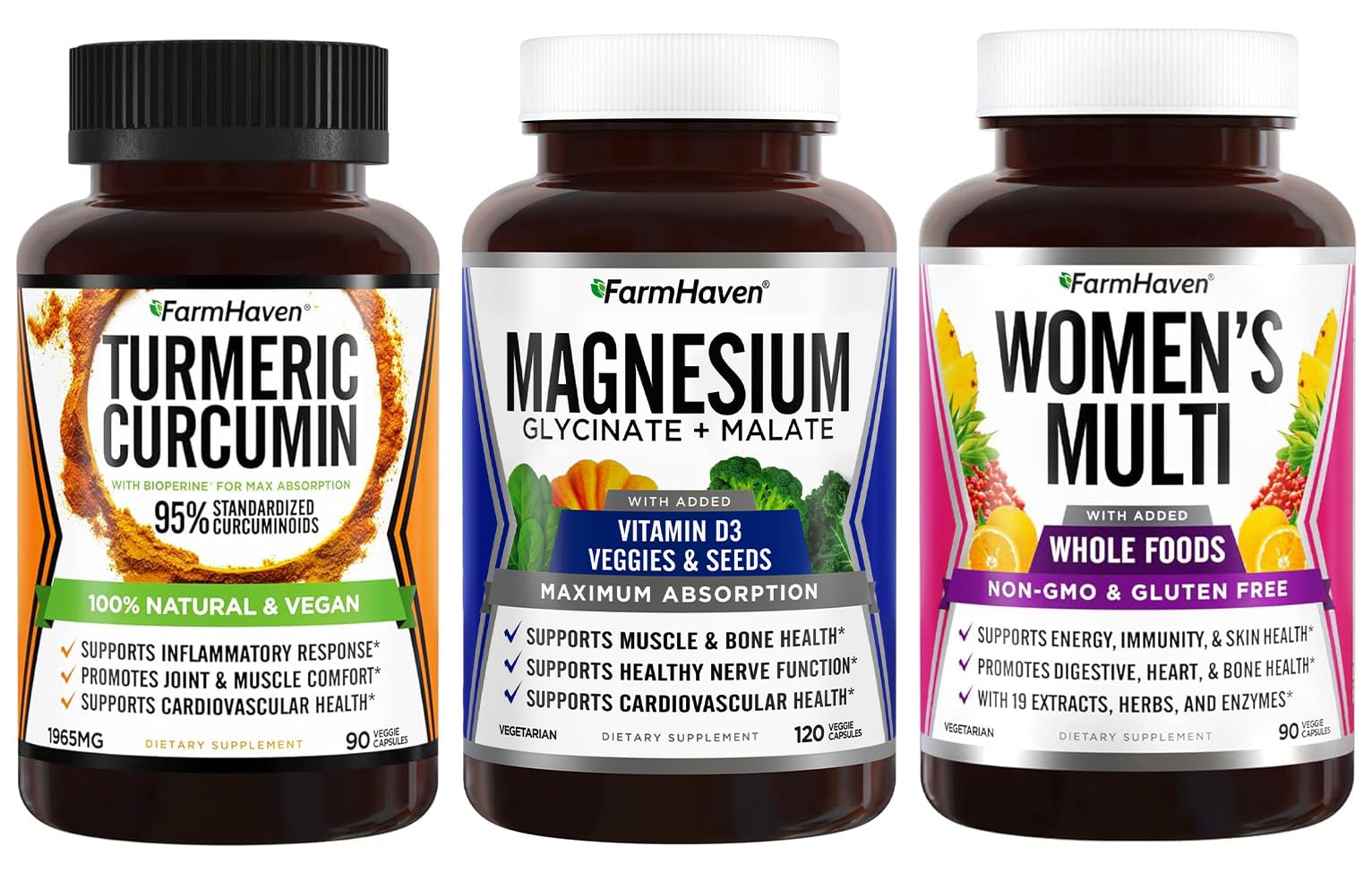 FarmHaven Magnesium + Multivitamin for Women + Turmeric Curcumin with BioPerine Black Pepper