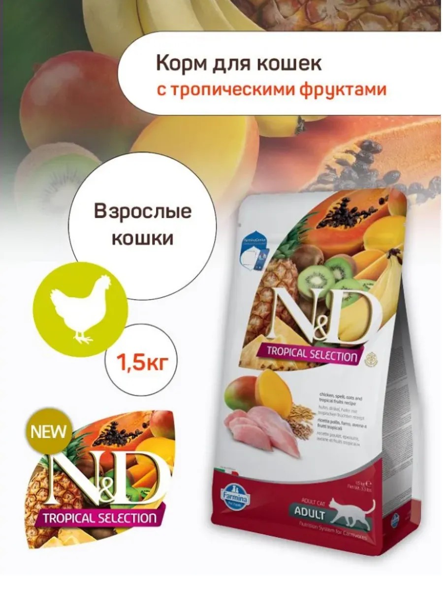 Farmina Корм для взрослых кошек с курицей и фруктами, 1,5кг