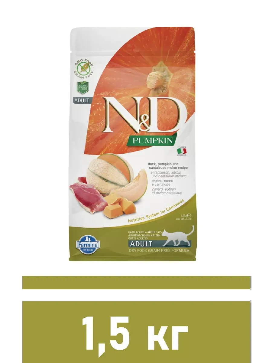 Farmina Сухой корм для взрослых кошек N&D Pumpkin, утка 1,5 кг