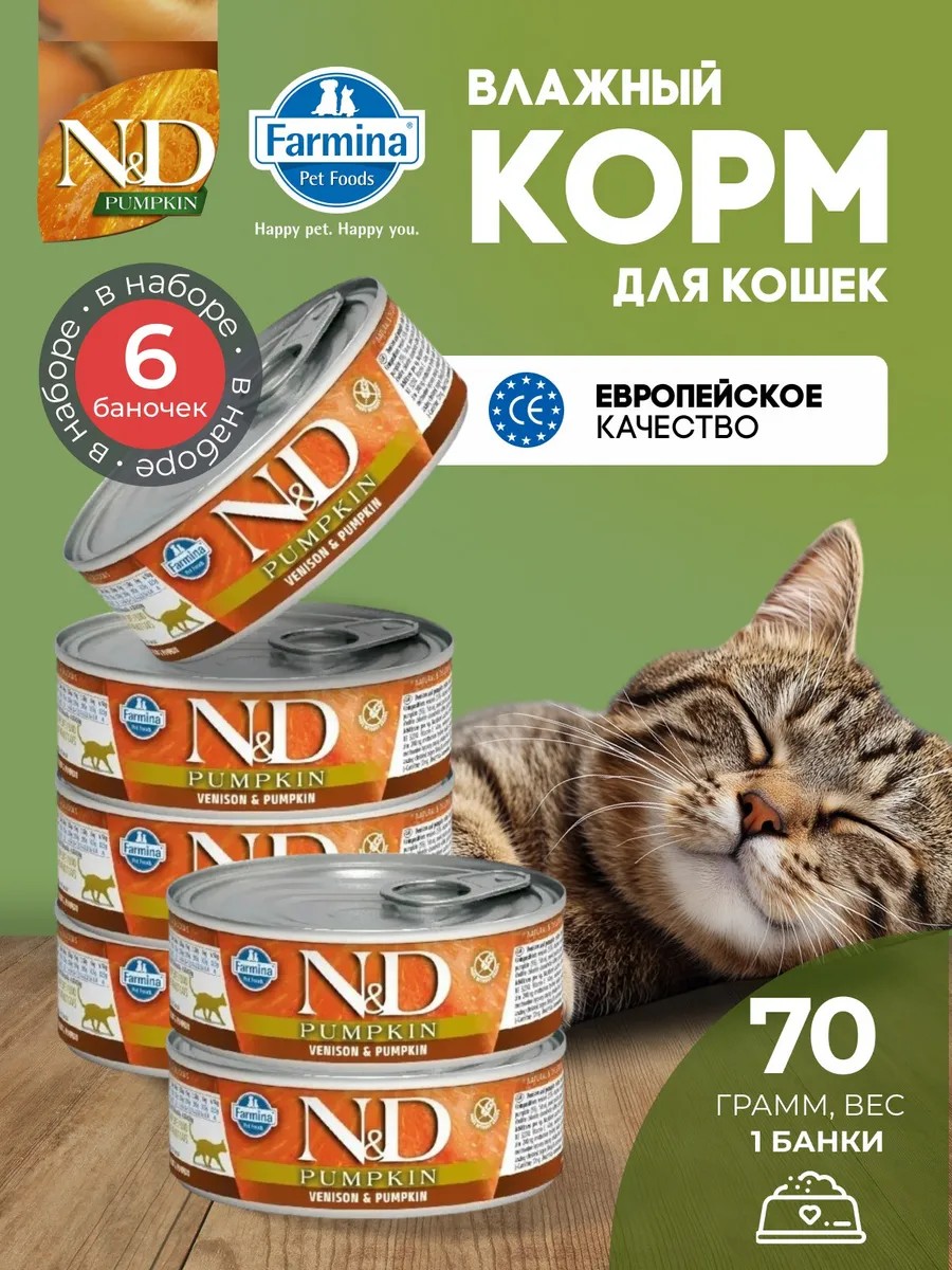 Farmina N&D Pumpkin. Полнорационный влажный корм для взрослых кошек с олениной и тыквой. Влажные корм Фармина Тыква для кошек