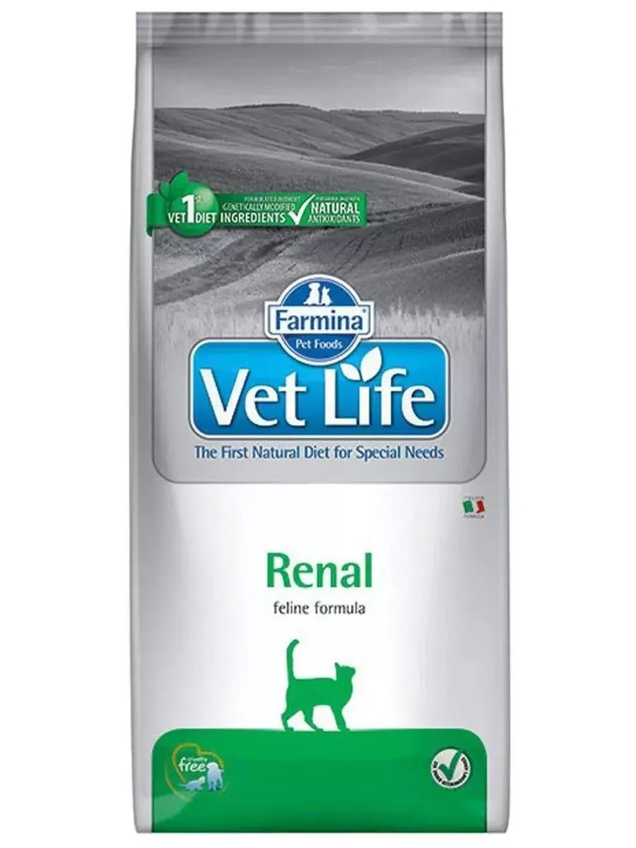 Farmina Vet Life Renal – диетический сухой корм для кошек, разработанный для поддержания функции почек при почечной недостаточности. Диета содержит низкое количество фосфора и ограниченное количество белка. Корм сухой Farmina для кошек Vet Life Renal содержит ограниченное количество белков, фосфора и натрия для снижения метаболизма азота; способствует снижению гиперфосфатемии и тормозит развитие гиперпаратиреоза. Фармина для кошек способствует контролю системной гипертензии (на начальной стадии сердечной недостаточности). Клинические тесты показали, что сухой корм для кошек Farmina Vet Life Renal улучшает качество жизни кошек, страдающих почечной недостаточностью и на начальных стадиях сердечной недостаточности. Сниженное содержание белка. Низкое содержание белка способствует снижению метаболизма азота и тормозит развитие гипертензии. Низкий уровень натрия и фосфора. Контроль гипернатриемии и гиперфосфатемии. L-карнитин повышает толерантность к физической нагрузке. Полиненасыщенные жирные кислоты Омега-3 способствуют улучшению гломерулярной фильтрации. Белки высокой биологической ценности профилактируют потерю мышечной массы. Все продукты Farmina разработаны специалистами и протестированы на собаках и кошках в домашних условиях содержания.
