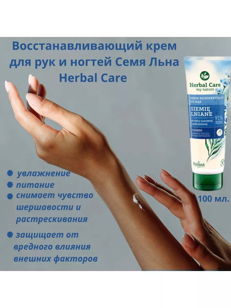 Herbal Care Flax Seed Restorative Hand and Nail Cream contains gentle, natural, regenerating active ingredients that strengthen nails and effectively care for the skin of your palms, improving their condition and appearance. After using the cream, your skin is immediately soothed and perfectly regenerated, roughness and cracking are relieved, and it becomes intensely moisturized, silky-smooth, and elastic, effectively protected from the harmful effects of external factors. **HOW TO USE**: Apply the cream evenly to your hands and allow it to absorb. Suitable for daily use.