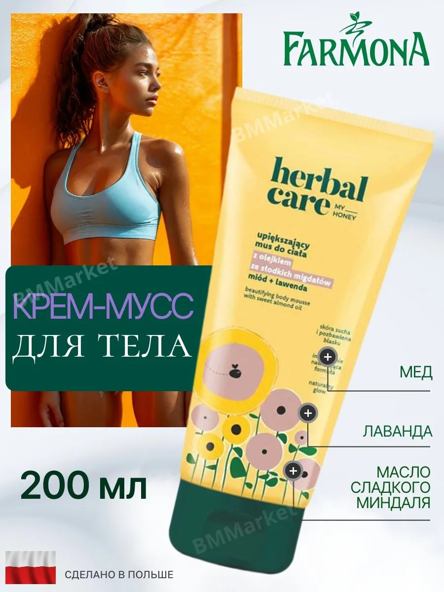 Ухаживающий мусс для тела с маслом сладкого миндаля, медом и лавандой Herbal Care my honey от польского бренда Farmona представляет собой идеальное решение для сухой кожи. Этот восстанавливающий крем мусс обладает уникальной формулой, которая благодаря натуральным активным ингредиентам обеспечивает интенсивное увлажнение и восстановление.