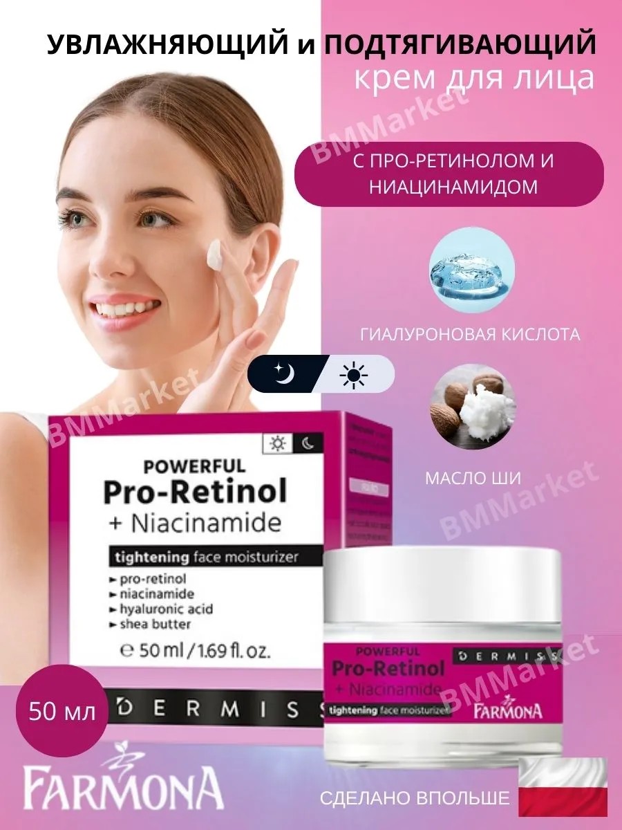 Увлажняющий подтягивающий крем для лица с про-ретинолом и ниацинамидом DERMISS от польского бренда Farmona представляет собой идеальное решение для ежедневного ухода за всеми типами кожи, особенно для зрелой, подверженной возрастным изменениям и сниженной эластичности. Этот крем сочетает в себе мощные активные компоненты, которые обеспечивают видимые результаты.