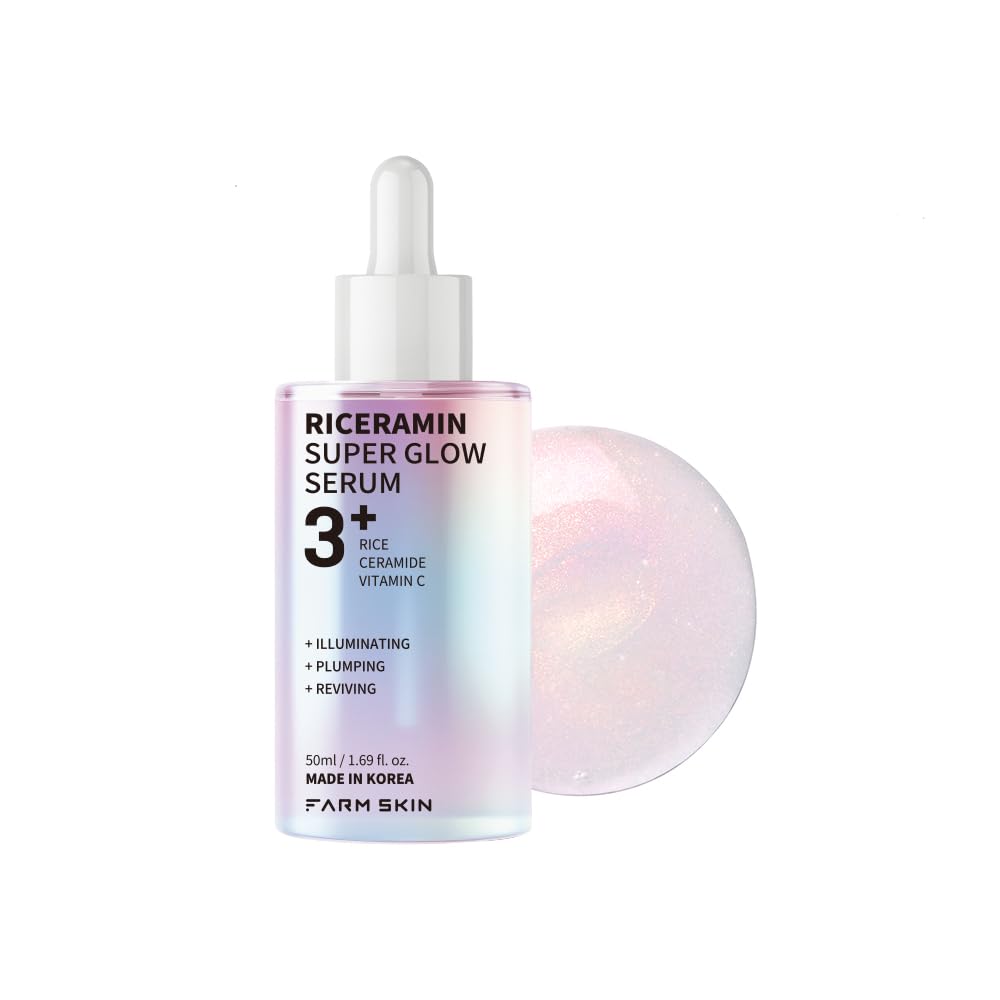 FARMSKIN Riceramin Super Glow Serum - Revitalizing & Moisturizing Makeup Primer Face Serum with 5x Ceramide Rice Extract & Vitamin C - Korean Skin Care for Uneven Skin Tone & Visible Spots 1.69 fl oz
