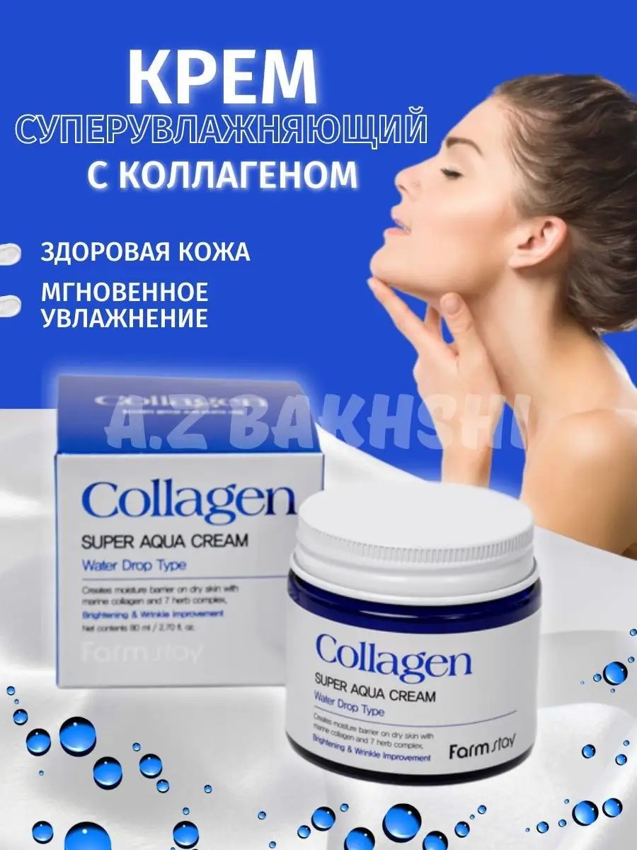 Farmstay Collagen Super Aqua Cream Water Drop Type FarmStay Moisturizing Face Cream with Marine Collagen, 80 ml. The toning effect of this cream is noticeable after the first use. This moisturizing cream with a high collagen content can quickly restore dehydrated skin. The nourishing cream evens out the skin's texture, filling in fine wrinkles and significantly reducing visible ones. Enriched with natural chamomile and lavender extracts, this toning cream will soothe irritation from wind and frost. This cream for dry skin will cope with severe flaking and redness. For a lasting effect, use daily morning and evening.