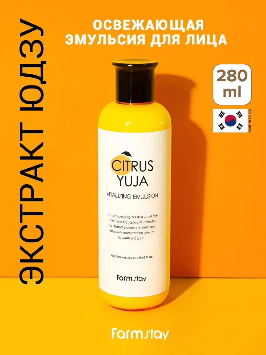 Эмульсия освежающая, питательная с экстрактом юдзу для ухода за кожей лица, шеи и зоны декольте, Корея. Увлажняющая эмульсия оказывает увлажняющее, питательное, смягчающее и омолаживающее действие. Освежает, не создавая ощущения стянутости или липкого слоя, восстанавливает гидролипидный барьер кожи. Экстракт юдзу, богатый витамином С, оказывает мощное антиоксидантное воздействие, разглаживает морщины. Он поддерживает синтез коллагена и повышает упругость и эластичность эпидермиса. Легкая текстура способствует приятному увлажнению и глубокому впитыванию полезных веществ. Освежающий эффект ощущается уже после первого применения. Регулярное использование делает кожу здоровой, ровной и свежей. Подходит для всех типов кожи, в том числе и для проблемной, нуждающейся в освежающем, питательном воздействии и деликатном уходе. Применение: нанести легкими круговыми движениями до полного впитывания на очищенную кожу лица и шеи. Повторять утром и вечером для максимального питательного эффекта. Корейская увлажняющая эмульсия для лица станет идеальным подарком женщине - маме, подруге, девушке и любимой на день рождения, новый год, 8 марта, день Святого Валентина. Рекомендуется к использованию в комплексе с серией корейской косметики для ухода за лицом и телом FarmStay / Фарм Стей.