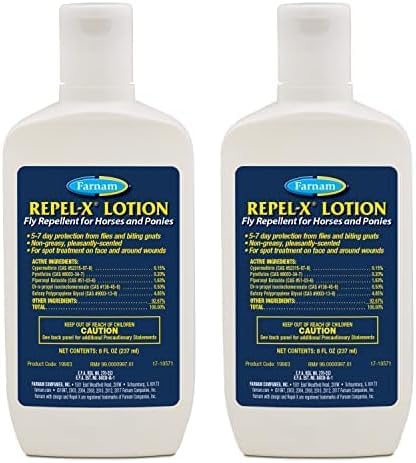 Farnam Repel-X Lotion Fly Repellent for Horses and Ponies Lotion - Pack of 2 - 8 Oz.