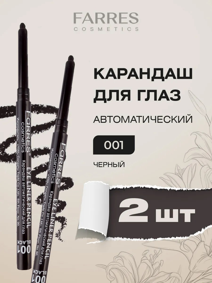 Farres Карандаши для глаз автоматические, тон 001 черный набор 2 штуки.
