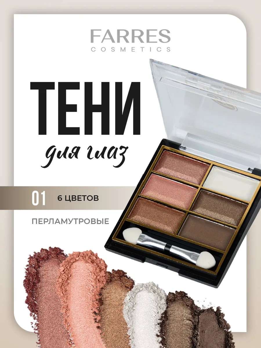 Farres Eyeshadow 6 Colors: Pearlescent, Pink, Beige, Brown, Shade 01