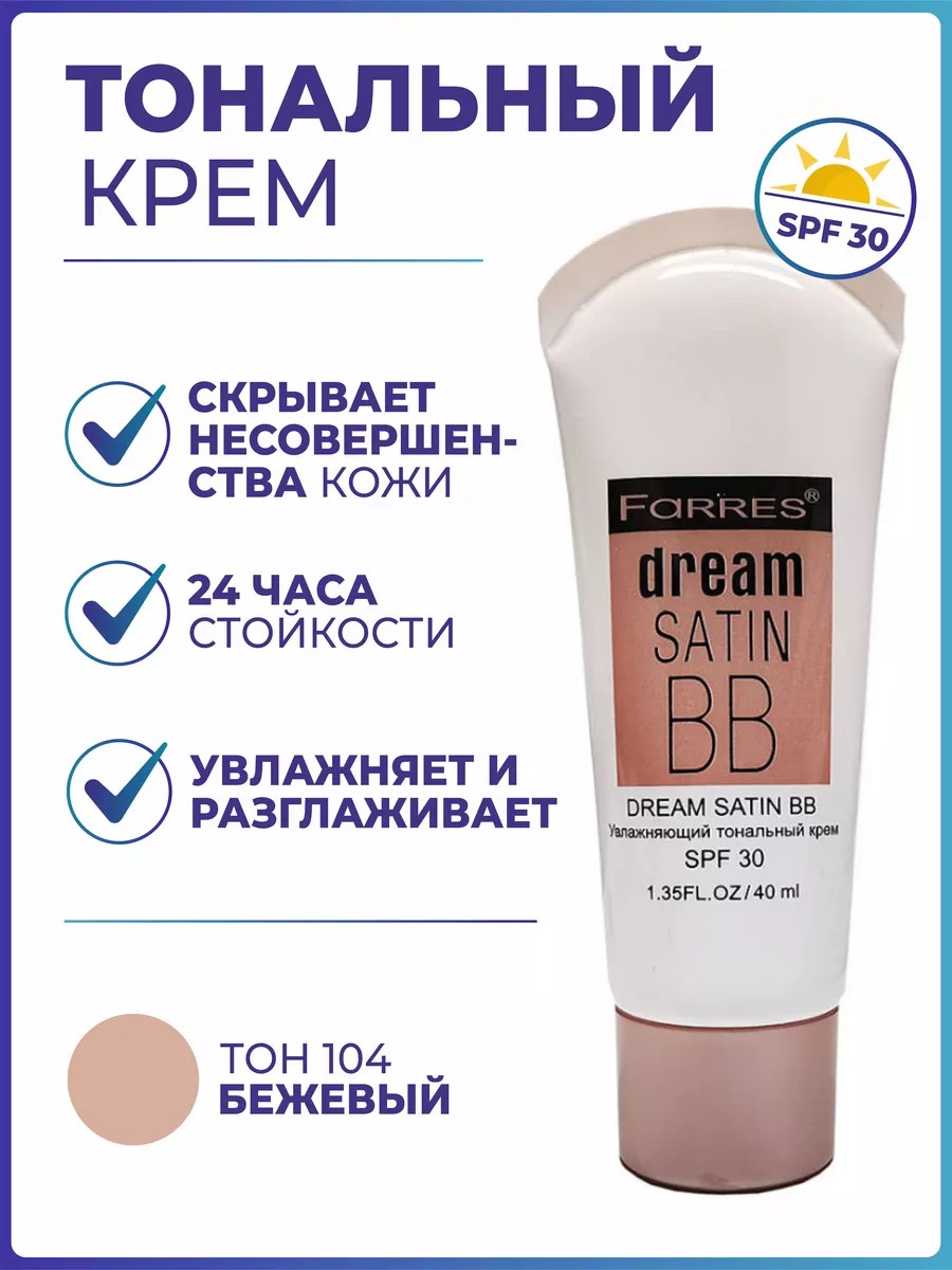 Farres Тональный крем Dream Satin BB увлажняющий SPF 30 тон 104