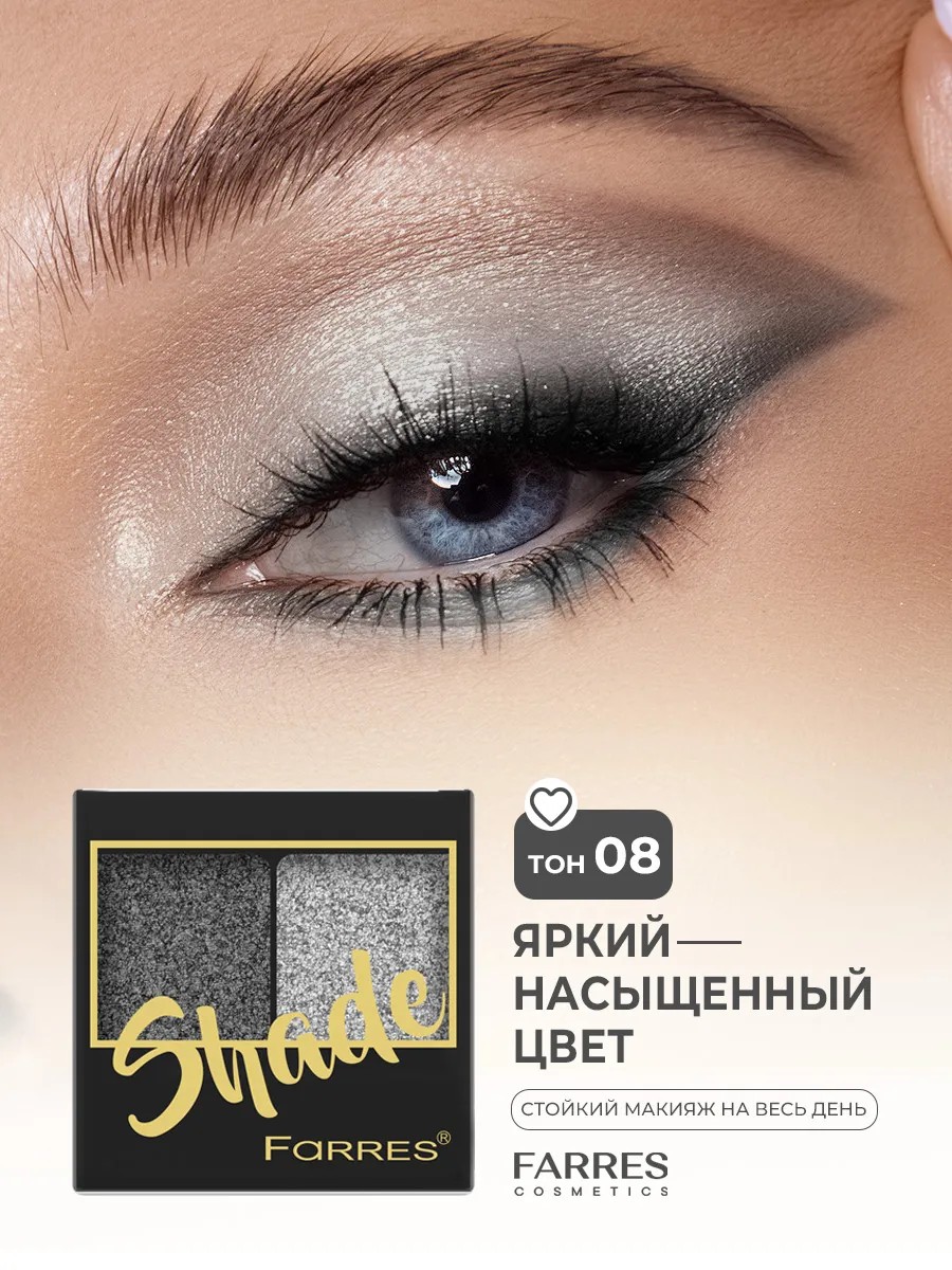 Create the perfect eye makeup look with the Farres eyeshadow palette! This two-shade set is sure to add radiance and brightness, while glitter and light-reflecting pigments add a shimmering effect. The long-lasting colored shadows are easily applied with a brush or the applicator included in the palette. A flawless result is guaranteed all day long. This versatile makeup product is perfect for any occasion, from everyday makeup to a party. This Beauty product is the perfect complement to a makeup base for contouring and shaping, making it a perfect choice for professional makeup artists, adult women, and teenage girls alike. Shimmering duochrome shadows add shine and beauty, and with a thin brush, you can draw eyeliner and create a full-coverage makeup look. This shimmering, highly pigmented product, built on a high-quality, hypoallergenic base, will help you create a host of striking feminine looks and will become a staple, perfect for every day and special occasions. This compact beauty product offers extremely long-lasting pigmentation and won't flake or crease throughout the day. This ensures flawless makeup from morning to night. It's the perfect ready-to-use gift for your mom, friend, girlfriend, or sister. Packaged beautifully in a small gift box, it's perfect for birthdays and any other occasion. We offer a wide range of shades, from delicate nudes to deep, rich, and vibrant satin, velvet, matte, and shimmery finishes. We have special offers and sales, so you can get our products as gifts at a discount! Farres cosmetics are the perfect New Year's gift! Buy our products to give as New Year's gifts.