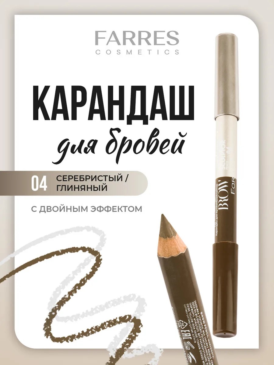 Farres Карандаш скульптор для бровей двухсторонний, тон 04 серебристый / серо-коричневый