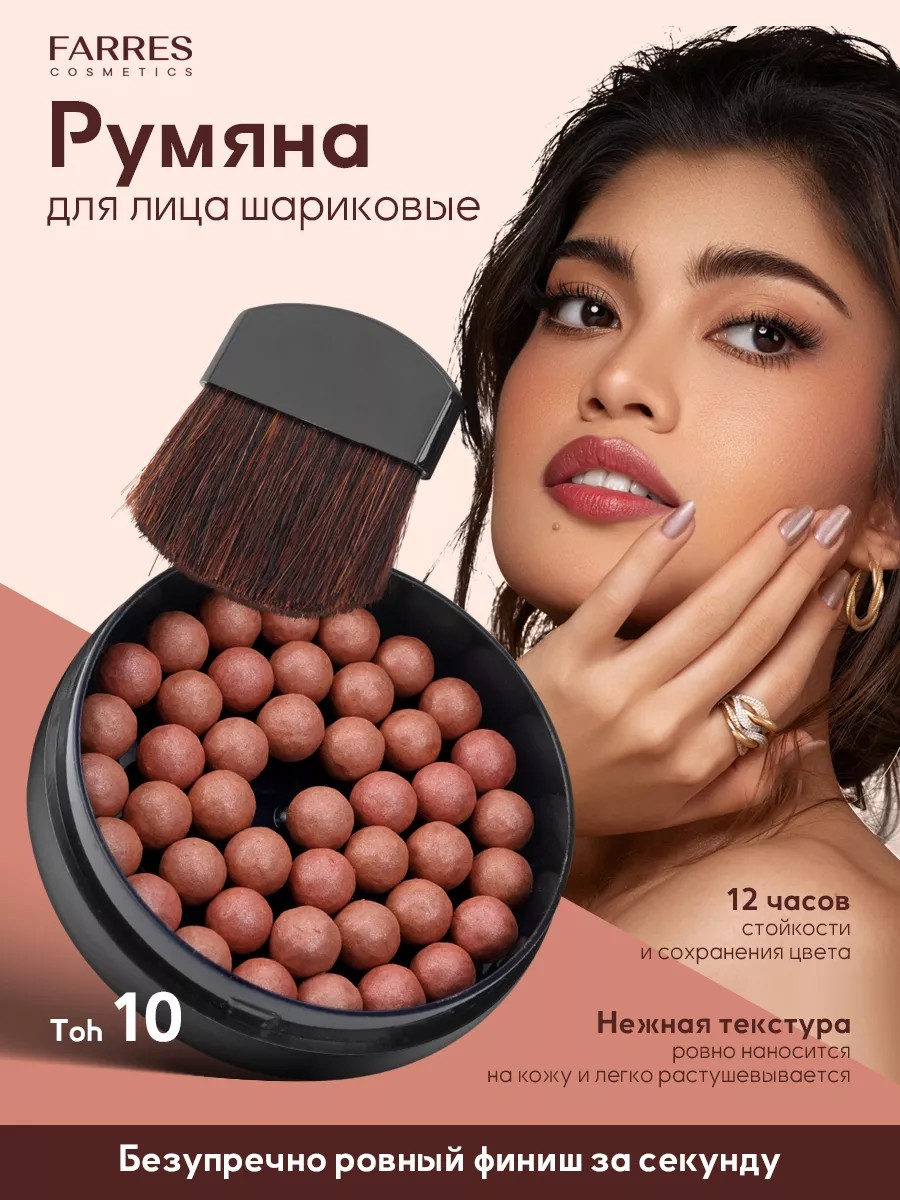 Шариковые румяна подарят коже сияние и эффект скульптурирования. Представленный beauty - продукт FARRES обладает натуральной минеральной формулой, которая способствует идеальному покрытию при создании макияжа.