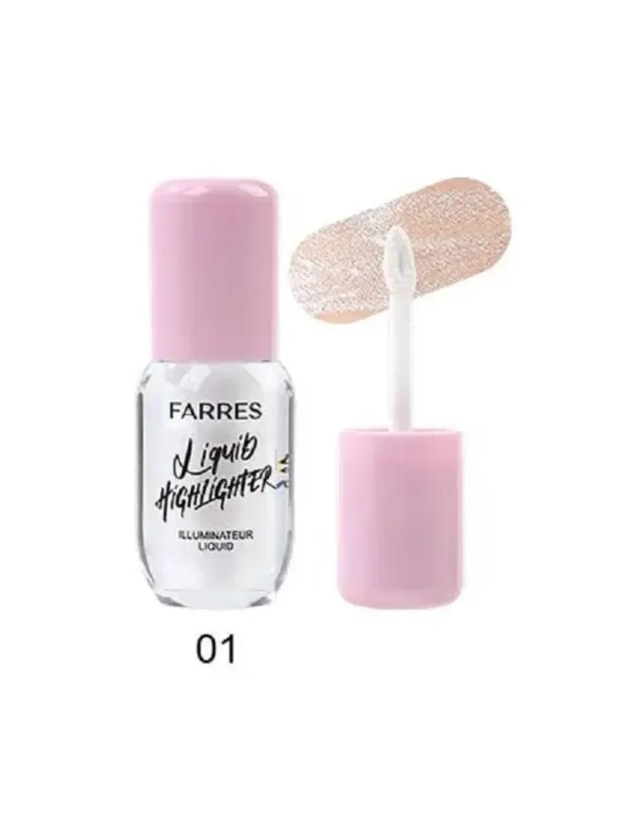 Farres Liquid Highlighter 9003. Its light, weightless formula absorbs quickly without leaving a sticky or heavy feeling. It spreads evenly over the skin, adheres tightly, and helps create a fresh, radiant finish. This highlighter is ideal for highlighting cheekbones, the bridge of the nose, the chin, above the lip, and in the corners of the eyes. It adds definition and visually corrects the shape of the face. The product is easy to apply with a brush or fingers, making it convenient for both beginners and professionals. The liquid formula allows you to achieve a subtle, delicate glow or a more pronounced glossy effect when layered.