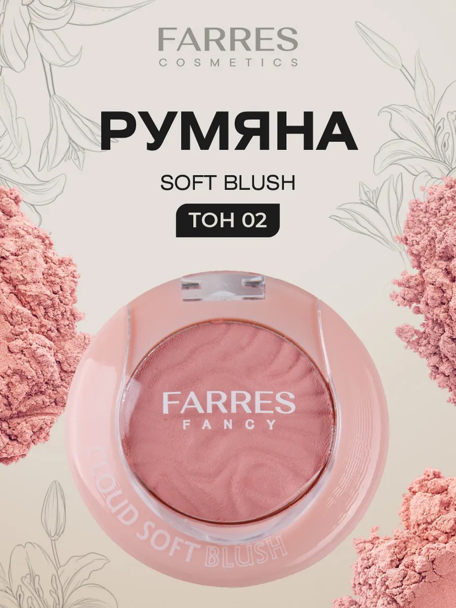Farres Румяна компактные для лица сухие Cloud Soft Blush, тон 02
