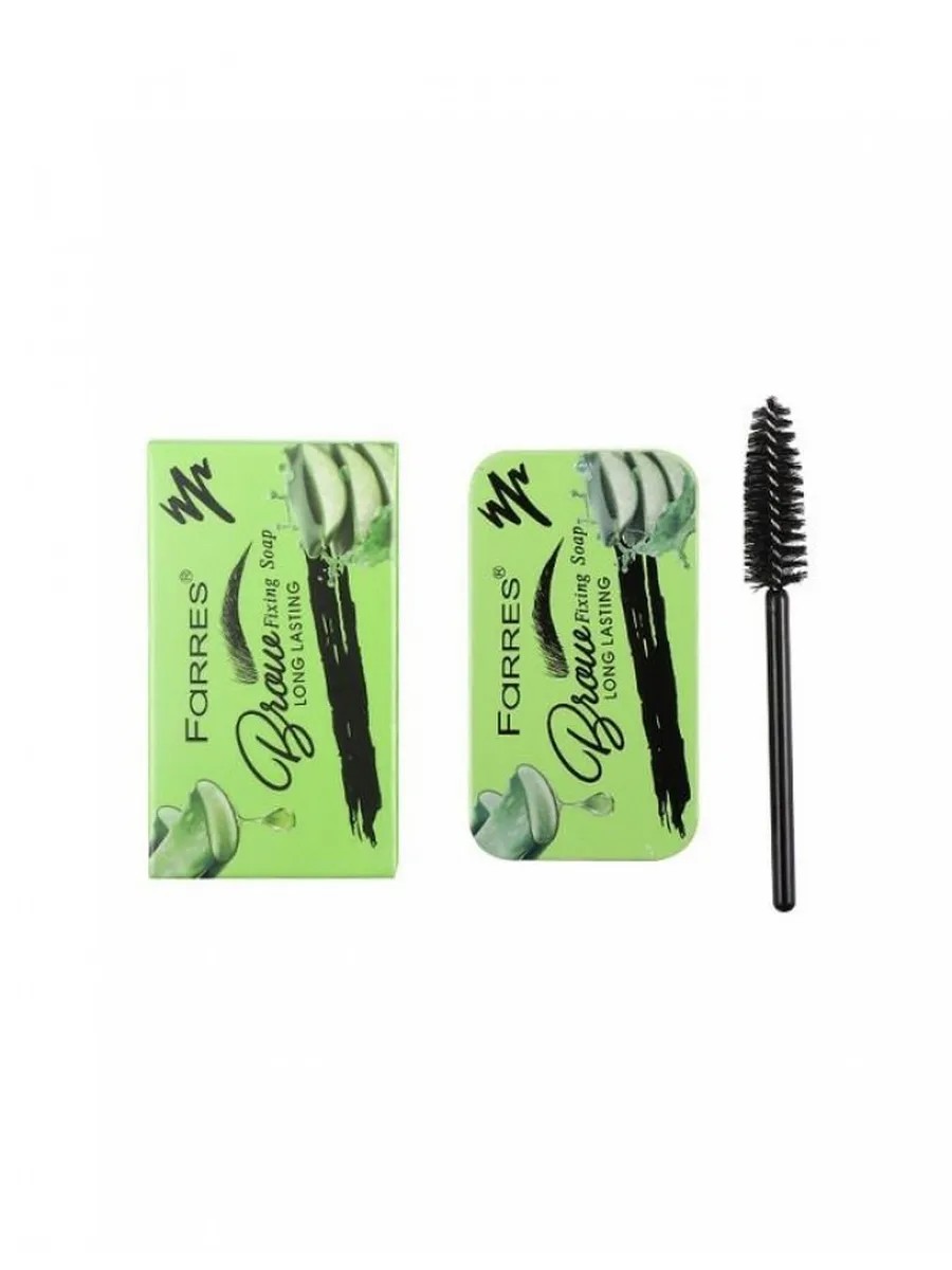 The long-lasting gel formula fixes the curl and flawlessly shapes the eyebrows throughout the day. \nDirections for use: 1. Eyebrows should be clean and unshaped. \n2. Wet the brush with water or makeup fixative. \n3. Using circular motions, apply soap to the damp brush and then transfer it to the eyebrows. \n4. Apply soap to the eyebrow in the direction of the hair growth, and then against the hair growth - this is necessary to ensure that the soap covers the eyebrow hairs from all sides. \n5. Using zigzag motions, begin combing the hairs upward with the brush. \n6. Turn the brush over and press the back side (handle) onto the eyebrow hairs for a few seconds. This technique will ensure maximum hold, even for the most unruly hairs. \n7. If necessary, you can continue shaping your eyebrows with your favorite product (pencil, eyeshadow). Farres Eyebrow Fixative Soap with Aloe | Brand: FARRES | Weight: 0.03 | Height: 3.5 | Depth: 1 | Manufacturer: Farres | Width: 6.5