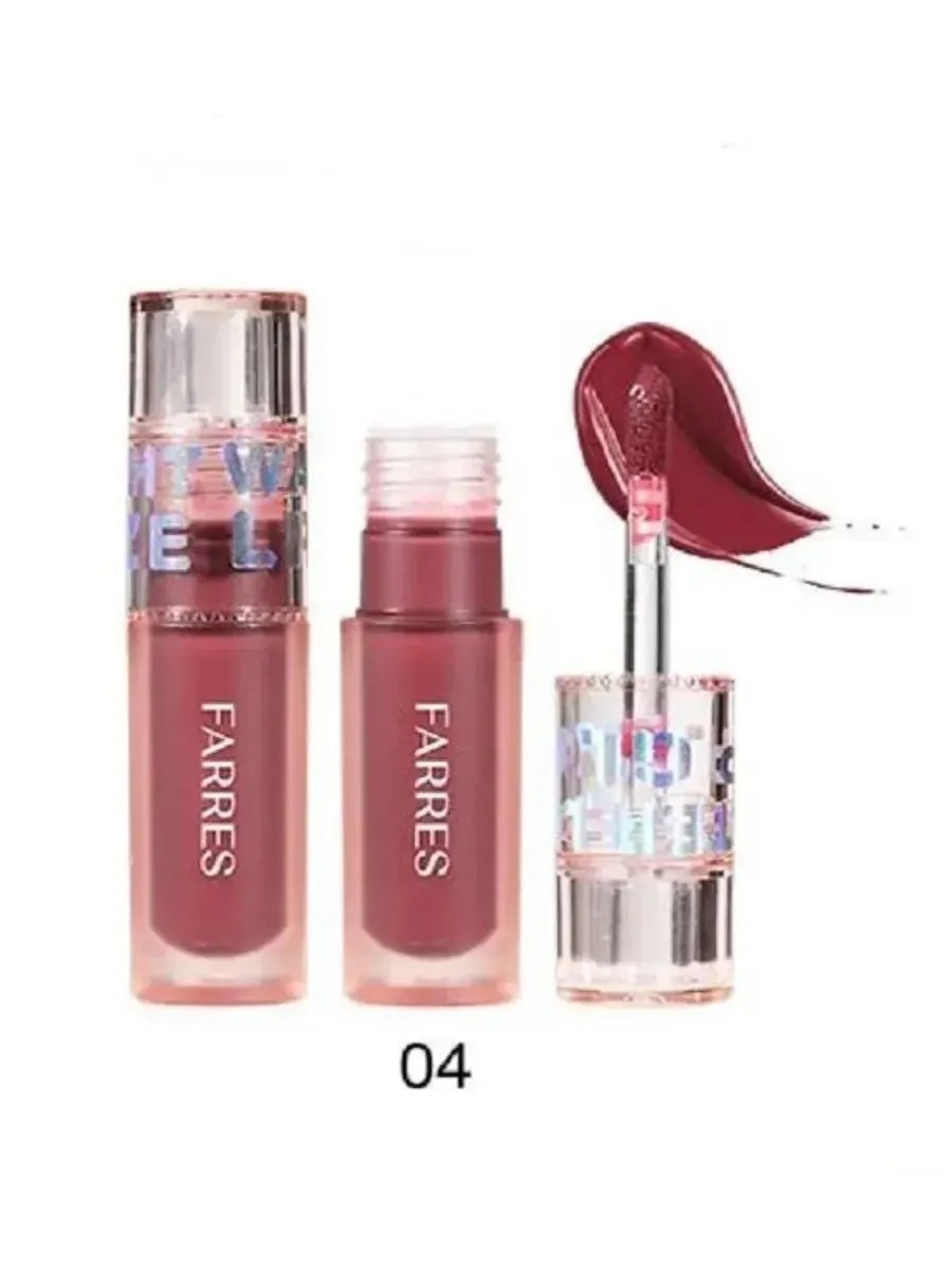 Farres Lip Tint with a Matte Finish 7212. This tint creates plump, moisturized lips. Its light, non-sticky texture enhances the natural color, leaving a moist finish reminiscent of a water-based shine. The formula, enriched with honey extract and collagen, provides hydration, leaving lips smooth and supple.